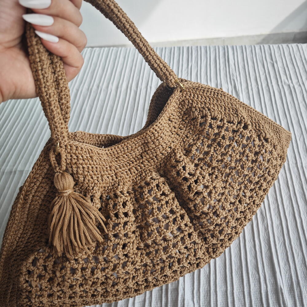 Her ilmeğinde sevgiyle örülmüş bu makrome çanta, sade şıklığı ve doğal dokusuyla tarzınıza sıcak bir dokunuş katıyor. El yapımı oluşu sayesinde her biri benzersizdir; tıpkı sizin gibi. ✨ Desenli örgüsü, hem modern hem nostaljik bir hava yaratırken, püskülü çantaya zarif bir ışıltı katıyor. Günlük kullanımda rahatlık sunan geniş iç hacmi ve sağlam yapısıyla hem şık hem işlevsel. 🎁 Kendinize küçük bir mutluluk armağanı ya da sevdiklerinize anlamlı bir hediye arıyorsanız, bu çanta tam size göre. Doğal malzemelerle, sürdürülebilir bir yaklaşımla üretilmiştir. İp kalınlığından dolayı bir kaç cm değişebilir.