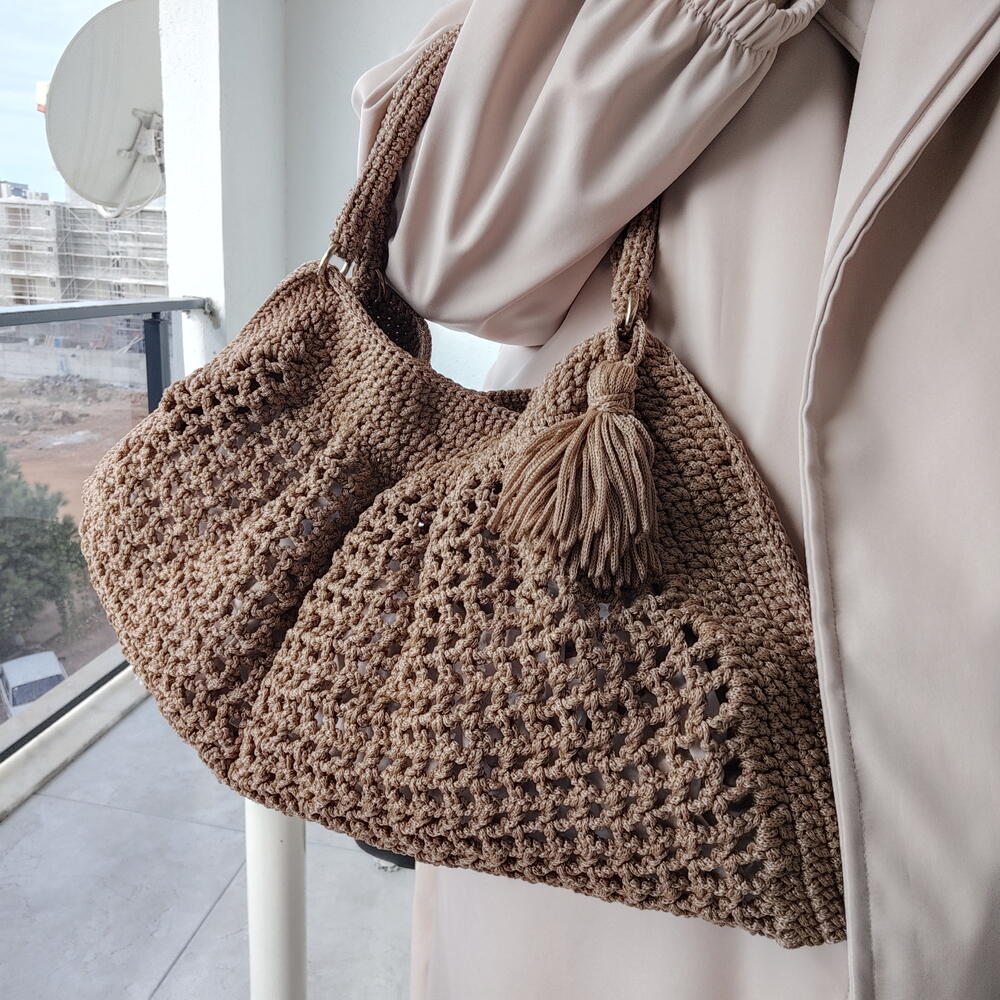 El Yapımı Örgu Makrome Çanta Kahverengi