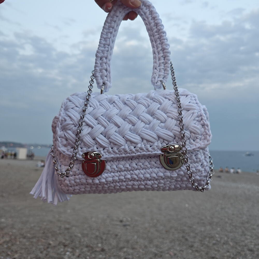 Deniz kenarında bir günün huzurunu yanınızda taşıyın… Bu beyaz örgü çanta, doğanın dinginliğinden ilhamla tasarlandı. Her ilmeği elde örüldü, her detayında zarafet gizli. Altın ve gümüş tonlarında iki farklı toka, çantaya hem nostaljik hem modern bir hava katıyor. Gümüş zincir askısı ise şıklığı tamamlıyor. Sınırlı sayıda üretilen bu özel parça, sevdiklerinize anlamlı bir hediye ya da kendinize zarif bir dokunuş olabilir. İpin kalınlığından dolayı bir kaç cm değişebilir. 🎁 El yapımıdır 💫 Sadece Flowwow’da
