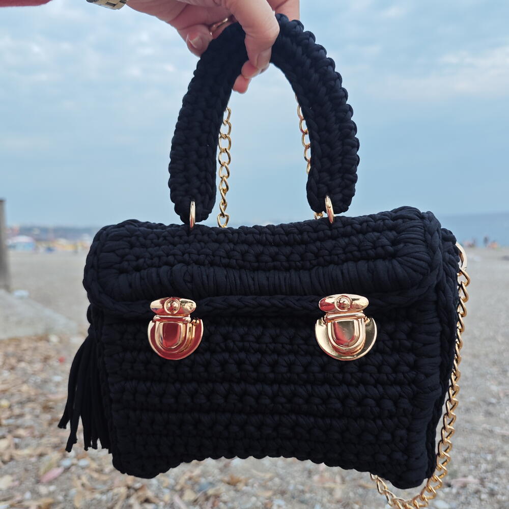 El yapımı siyah penye çanta, altın zinciri ve çift tokasıyla hem güçlü hem zarif bir duruş sergiliyor. Kalın örgü dokusu ve örgü sapı, hem sağlamlık hem de stil sunarken, altın detaylar çantaya sofistike bir hava katıyor. 🖤 Kimin için? Kendi tarzını cesurca ifade eden, geceye ve gündüze aynı şıklıkla eşlik eden kadınlar için. 🎁 Hediye fikri: Yeni iş, özel günler veya “senin gibi güçlü biri için” demek isteyenlere.