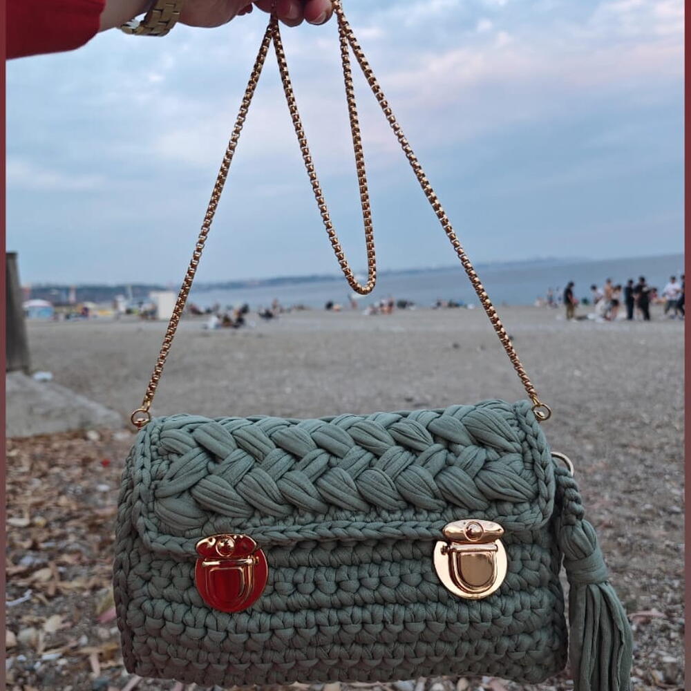 El Yapımı Örgu Penye Çanta Yeşil