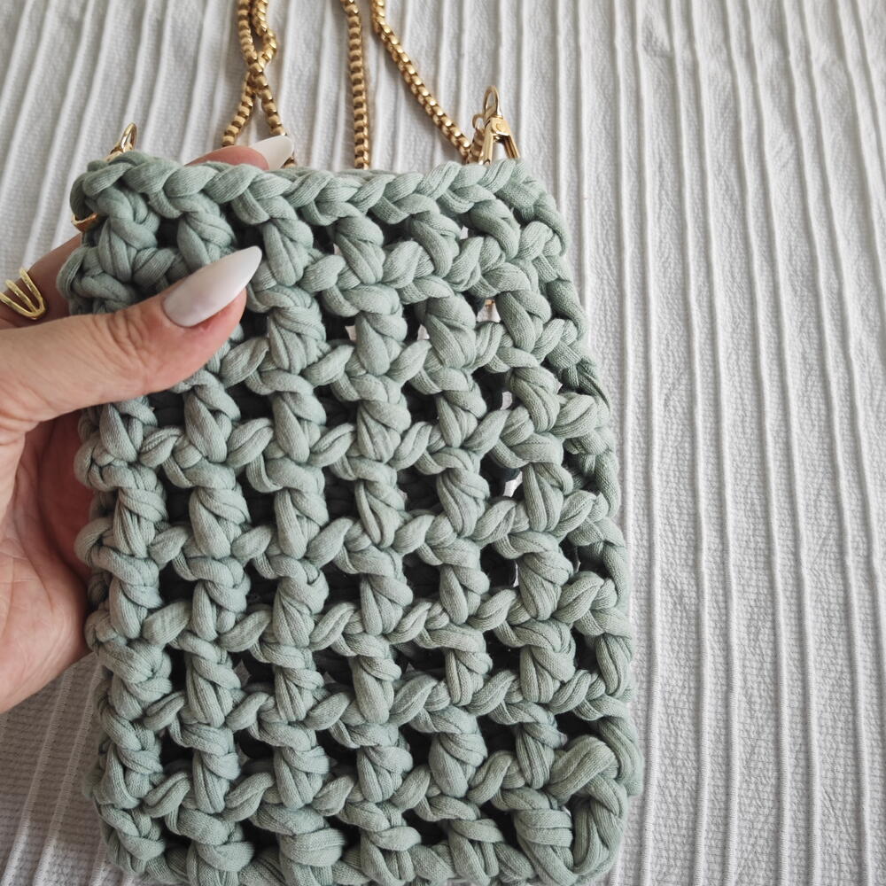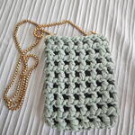 El Yapımı Örgu Telefon Çantası Mint Yeşili