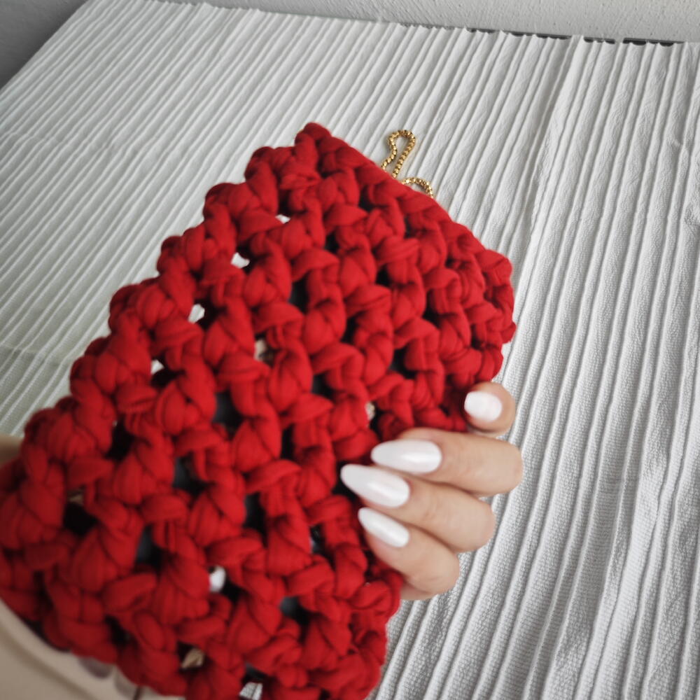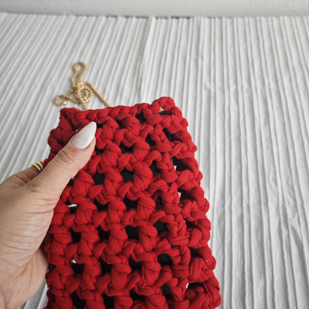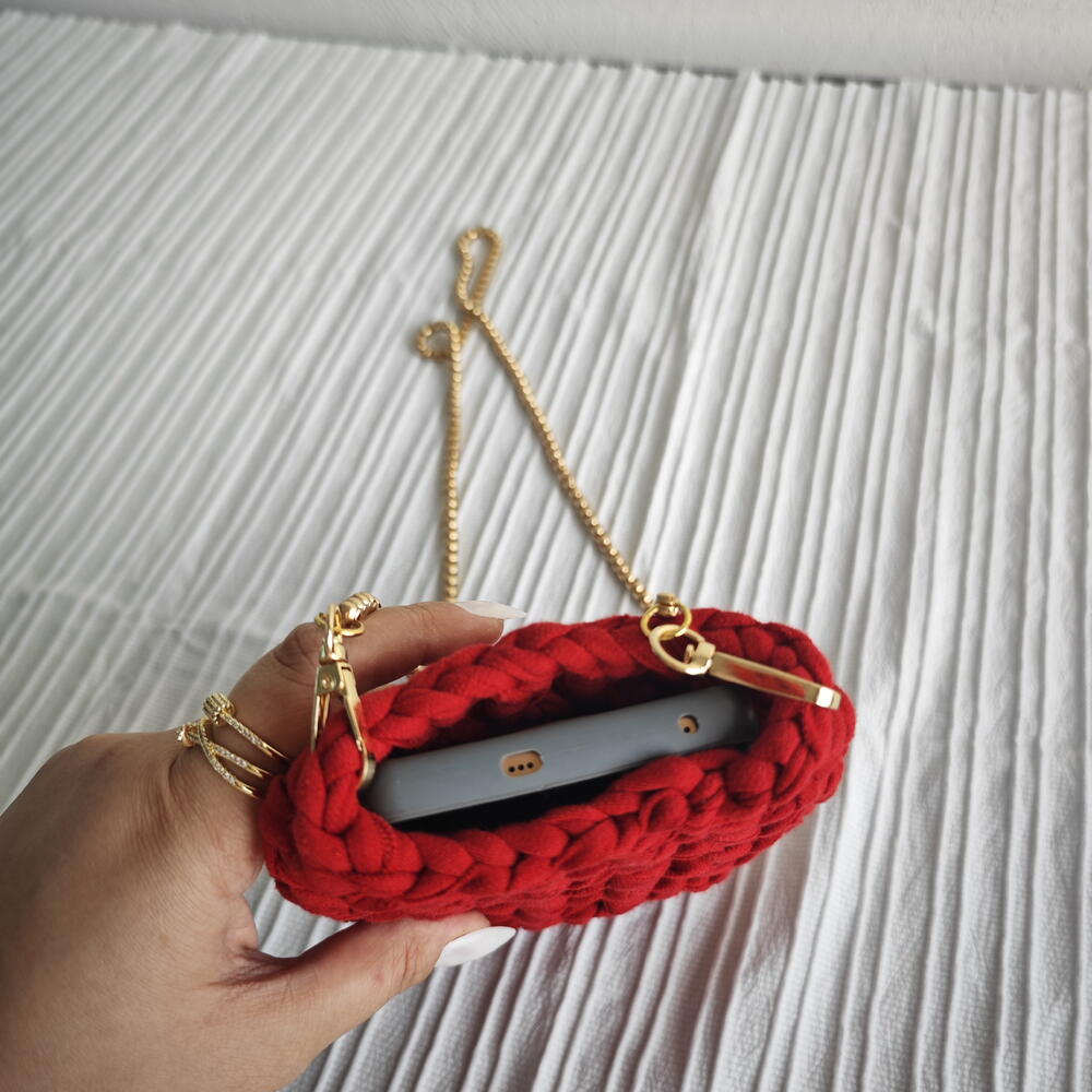 El Yapımı Örgu Telefon Çantası Bordo