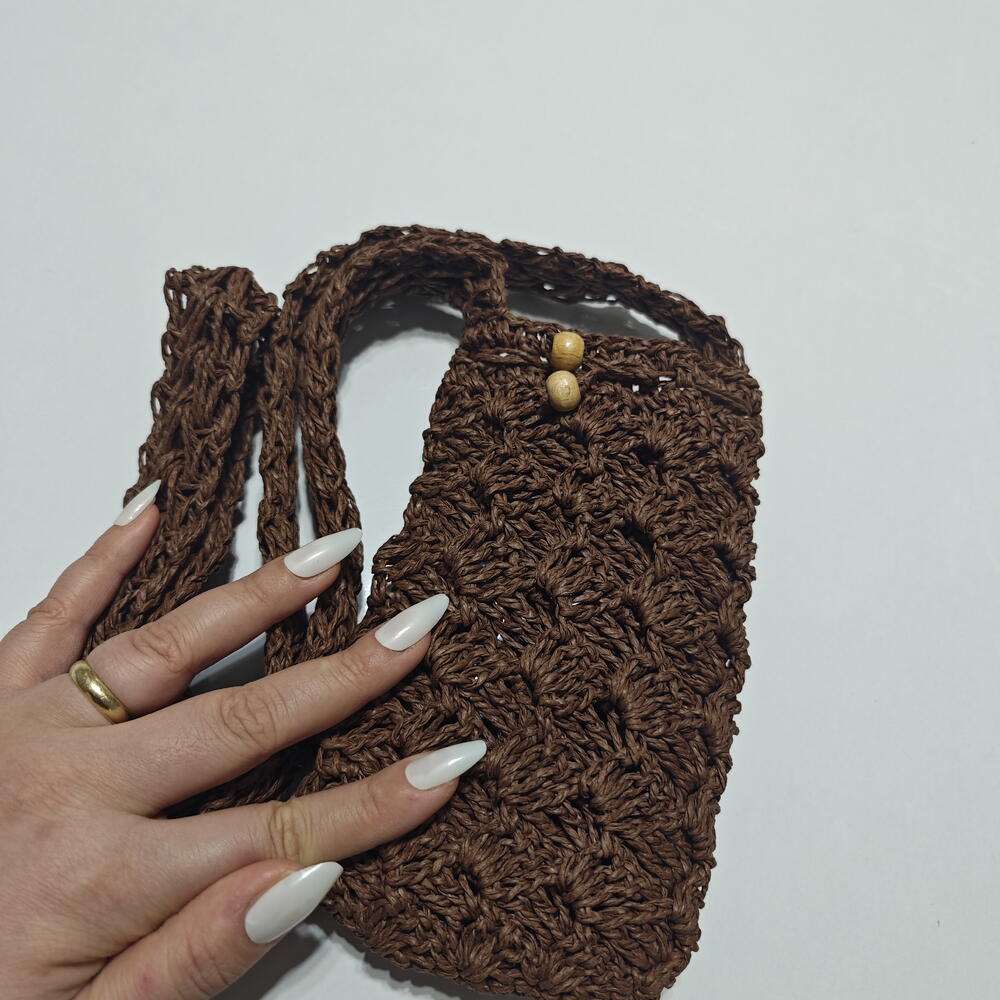 El Yapımı Örgu Telefon Çantası Koyu Kahverengi