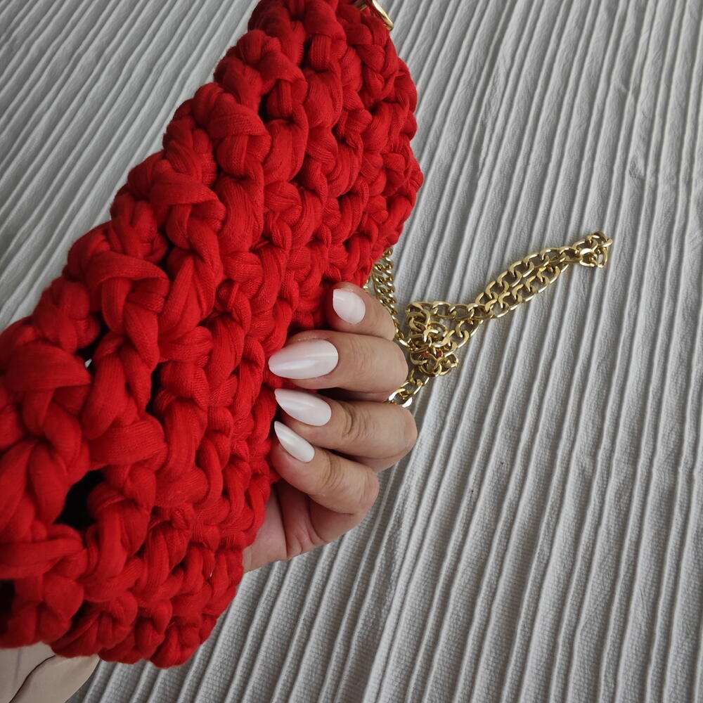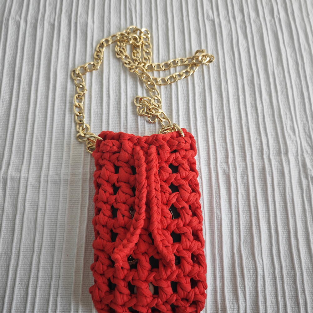 El Yapımı Örgu Telefon Çantası Kırmızı