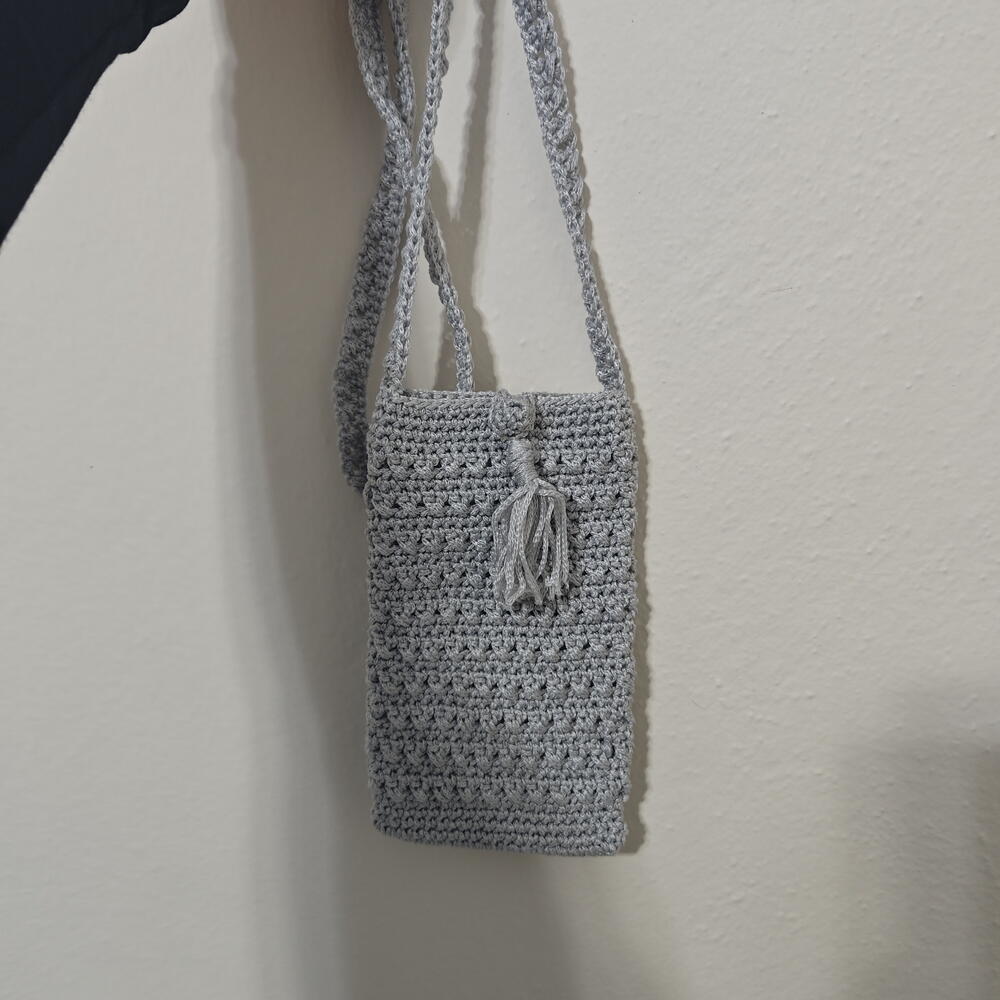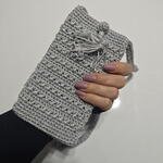 El Yapımı Örgu Telefon Çantası Açık Gri