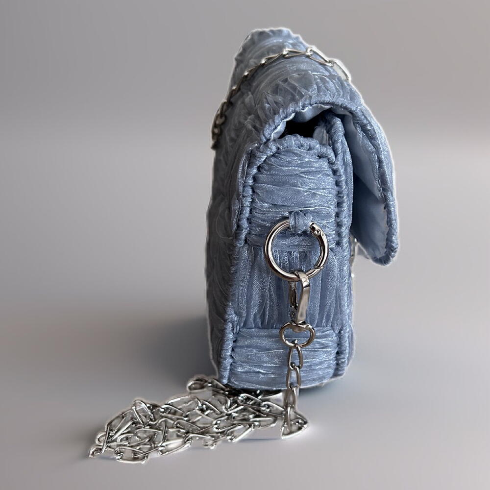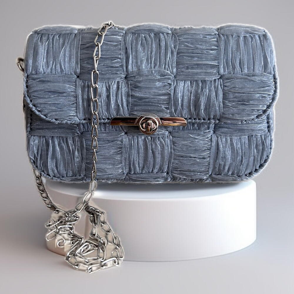 Bu zarif çanta, özellikle organze kurdeleden yapılmıştır ve iç astarı ile maksimum dayanıklılık ve konfor sağlar. Ürün, göz alıcı gümüş renk aksesuarlarla tamamlanmış ve hem gün içi hem de özel etkinlikler için mükemmel bir seçim yapmıştır. Ahşap ayrıntıları ve olağanüstü işçiliği, her türlü gardıroba sofistike bir dokunuş kazandıracak. Kişisel eşyalarınızı güvenli bir şekilde saklamak için ideal bir boyuttadır. Taşıması kolay, hafif ancak sağlamdır.