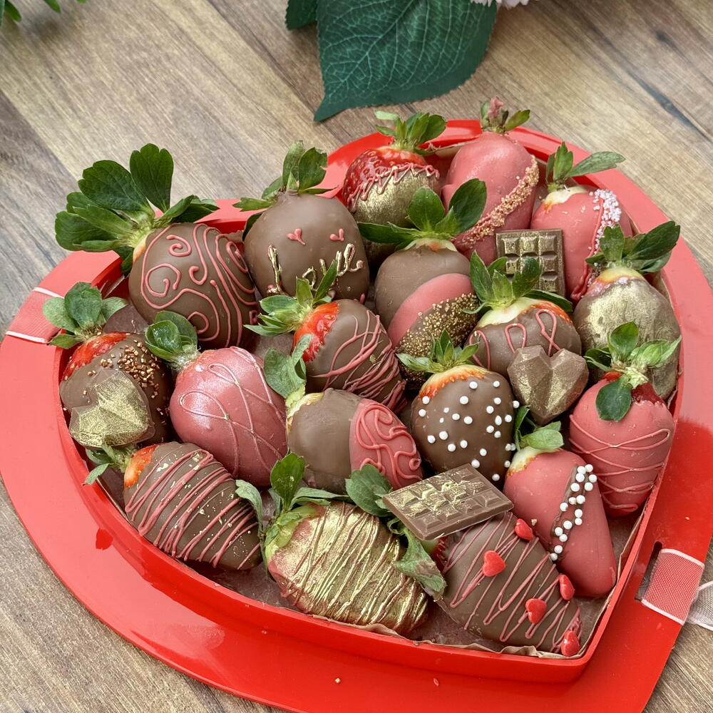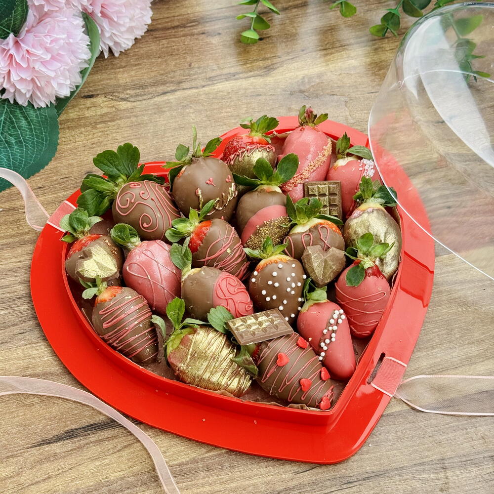 18 li kalpli kutu çikolatalı çilek
