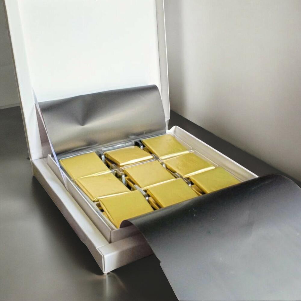 Bu zarif kutuda sunulan çikolatalar, hem göze hem damağa hitap eden özel bir hediye seçeneğidir. Altın sargılı kare çikolatalar, özel günlerinize tatlı bir dokunuş katmak için özenle hazırlanmıştır. Kutusu şık kırmızı kurdeleyle süslenmiş ve içerisine sevgiyle yerleştirilmiş çikolatalar, hem estetik hem de lezzet açısından üst seviyededir. Misafirlerinize sunabileceğiniz, sevdiklerinize armağan edebileceğiniz bu çikolatalar, sadeliği ve zarafeti bir arada sunar. Doğum günü, yıldönümü, Sevgililer Günü ya da özel bir teşekkür hediyesi için mükemmel bir tercihtir. Çikolatalar doğrudan güneş ışığından uzak, serin ve kuru bir ortamda saklanmalıdır. Buzdolabında saklanması önerilmez, ideal saklama sıcaklığı 18-22 °C’dir.