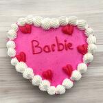 Bu sevimli kalp şeklindeki pasta, Barbie temalı bir doğum günü kutlaması için mükemmel bir seçim. Parlak pembe rengi ve etrafındaki beyaz kremalı süslemelerle, özellikle çocukların favorisi olacak. Üzerindeki kırmızı kalp figürleri ve Barbie yazısı, pastanın şık ve eğlenceli bir görünüm kazanmasını sağlıyor. Yumuşak krema ve hafif dokusu, her yaş grubundan tatlı severin beğenisini kazanacak.