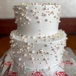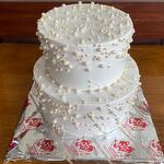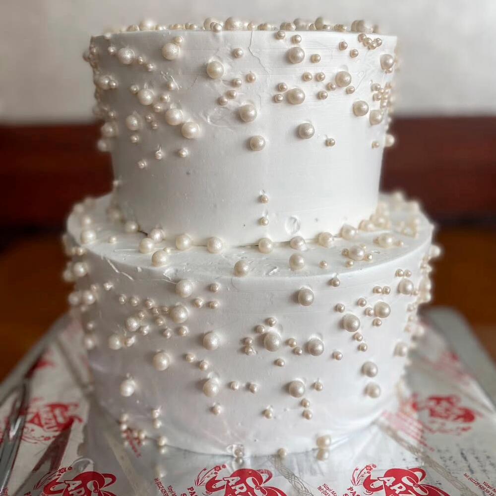 Bu zarif düğün pastası, şıklığı ve sade güzelliğiyle göz kamaştırıyor. İki katlı yapısı ve üzerindeki beyaz şeker incilerle süslenmiş, zarif bir dokunuşla adeta bir sanat eseri gibi. Bu pasta, özellikle düğünler ve özel günler için mükemmel bir seçim.