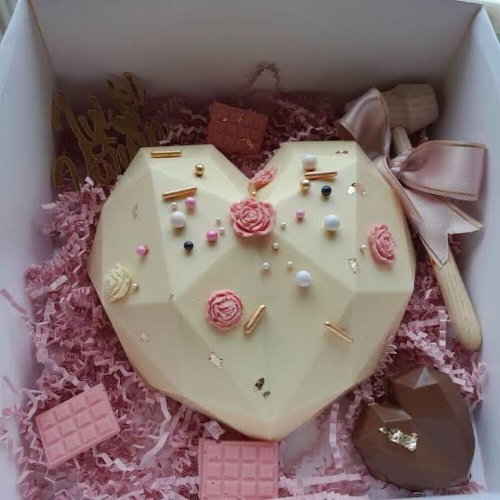 Beyaz Kalp Pinyata Çikolata (Çiçek Dekorlu) 🌸💖