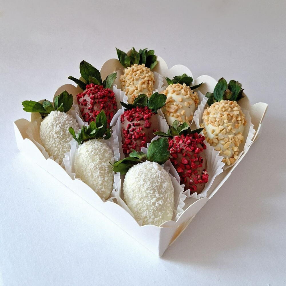 Özenle el yapımı, çikolata kaplı çileklerin lüks seçkisi 🍓 Her kutuda çeşitli tatlar ve dokular bulunur: yumuşak sütlü çikolata, narin beyaz çikolata, gevrek kuruyemişler, hindistancevizi parçacıkları ve canlı dondurularak kurutulmuş ahududular. Hediye vermek, kutlamalar veya kendinizi şımartmak için mükemmel. Taze, zarif ve özenle sunulmuş. ✨ Bir kutuda çeşitli tatlar ✨ Yüksek kaliteli doğal malzemelerle hazırlanmıştır ✨ Şık hediye ambalajı ✨ Her gün taze olarak hazırlanır