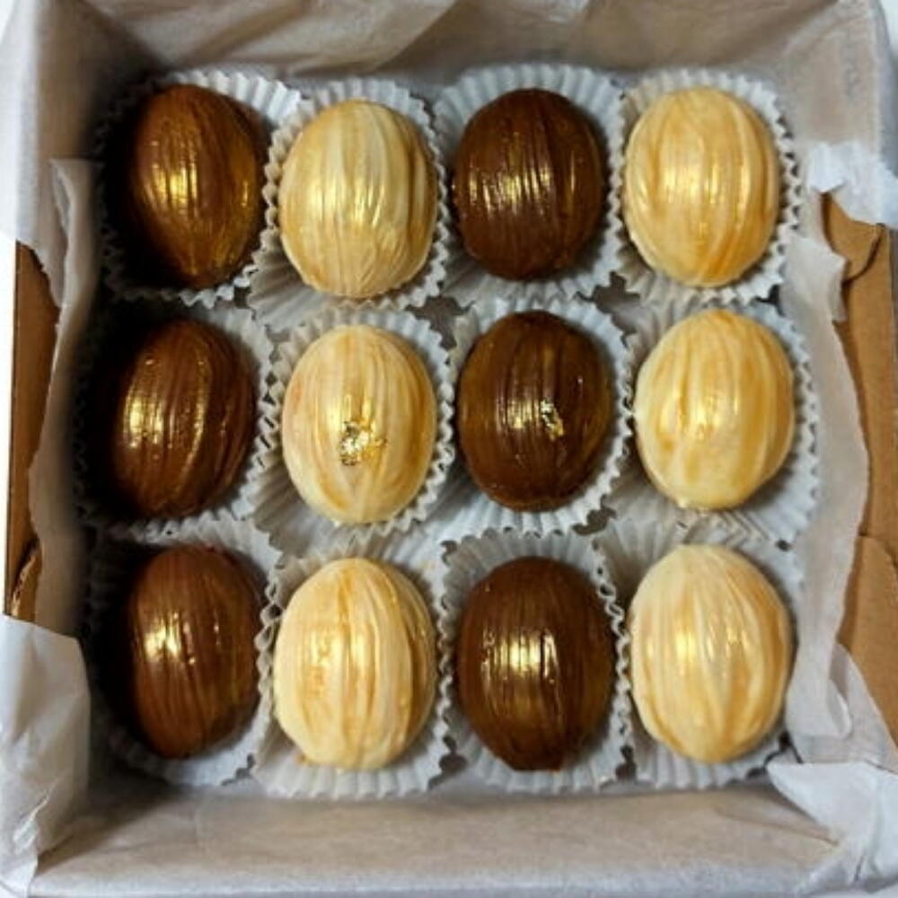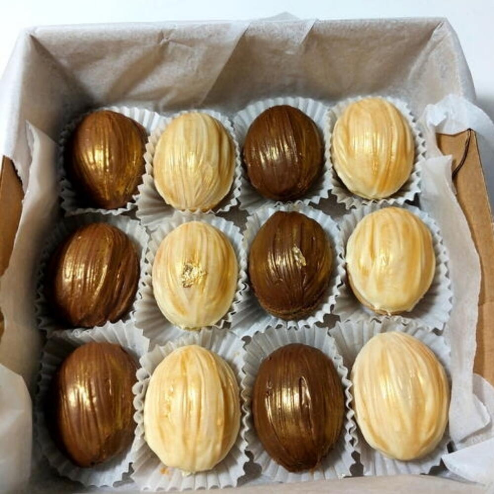 Çeşitli dolgulu nefis Belçika cikolatasi kapli ceviz kurabiyesi.