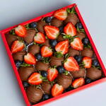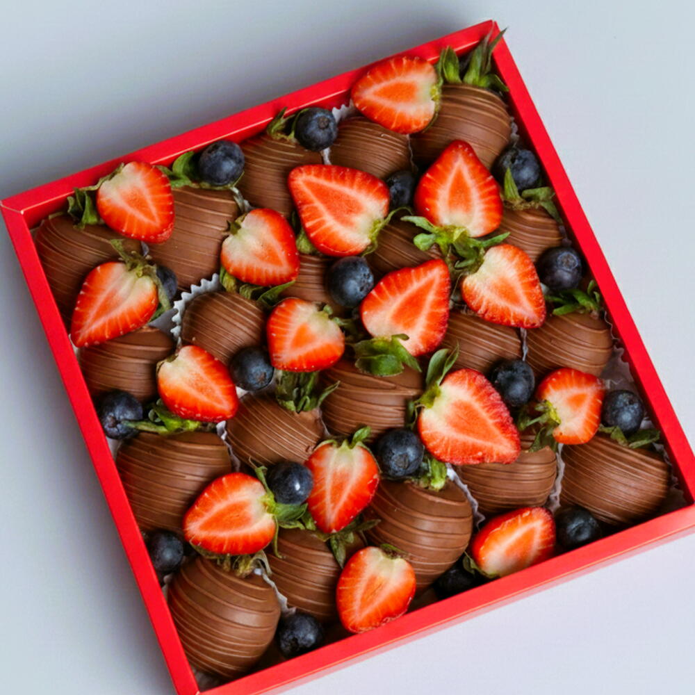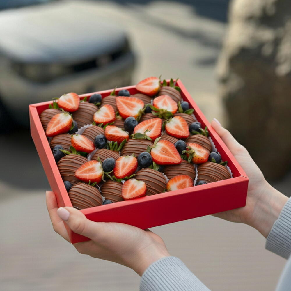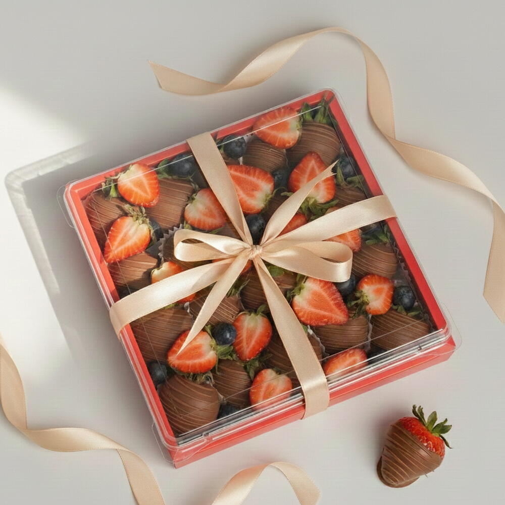 Özel günlerinize şık ve lezzetli bir dokunuş! Çikolata Kaplı Çilek Kutusu, taptaze çileklerin özenle çikolatayla kaplanmasıyla hazırlanır ve kutu içinde zarif bir sunumla teslim edilir. Üzerindeki taze meyve dokunuşlarıyla hem göze hem damağa hitap eder. Doğum günü, yıldönümü, teşekkür hediyesi ve sürprizler için ideal bir seçimdir.