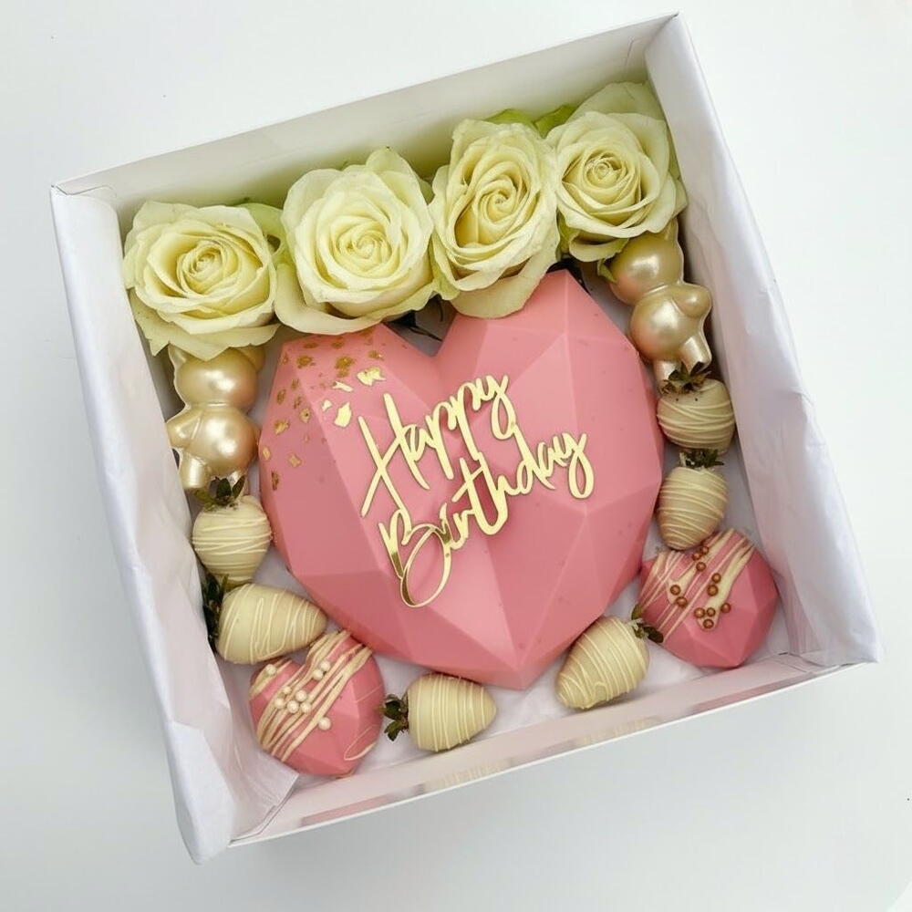 Doğum günü kutlamalarını daha da özel kılmak için tasarlanan bu pembe kalp şekilli çikolata pinatası, zarif detayları ve şık sunumuyla göz alıyor. Üzerindeki “Happy Birthday” yazısı, kutuyu açan herkese sıcak ve neşeli bir karşılama sunar. Pinatayı kırdığınızda içinden çıkan sürpriz mini çikolatalar, kutlamaya hem eğlence hem de tatlılık katar. Kutunun etrafını saran beyaz güller ve özenle kaplanmış çilekler ise bütün tasarıma lüks ve romantik bir dokunuş ekler. Hem görsel olarak etkileyici hem de lezzet dolu bu ürün, sevdiklerinize unutulmaz bir hediye sunmak için mükemmel bir tercihtir. Özel anları tatlandırmak, doğum gününe hem zarafet hem de eğlence katmak isteyenler için ideal bir seçenek.