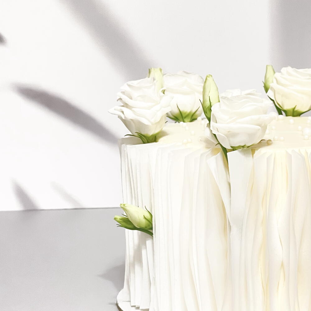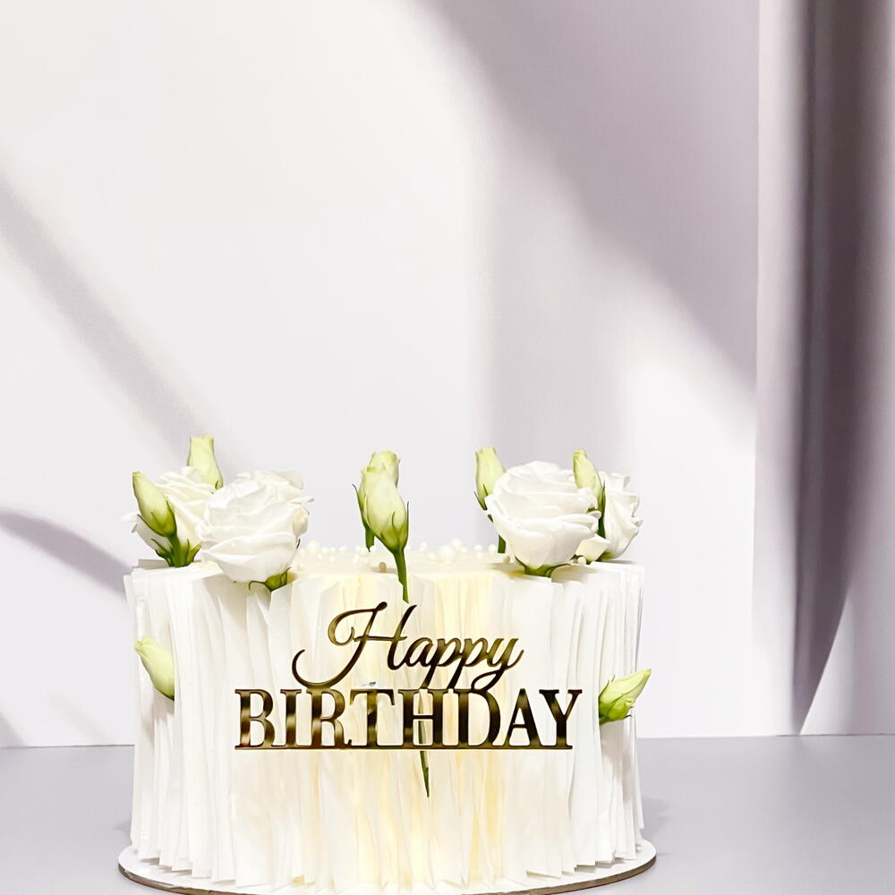 Rafine ve minimal bir tarzda tasarlanmış zarif beyaz doğum günü pastası 🤍 Narin beyaz güller ve şık bir “Mutlu Yıllar” detayıyla süslenmiş olan bu pasta, zamansız ve sofistike kutlamalar için mükemmel bir seçimdir. Hafif, zarif ve güzelce dengelenmiş — her özel an için mükemmel bir merkez parça. ✨ Üstün kaliteli malzemeler ✨ Özelleştirilebilir tatlar mevcut ✨ Zarif çiçek tasarımı ✨ Sipariş üzerine taze olarak hazırlanır
