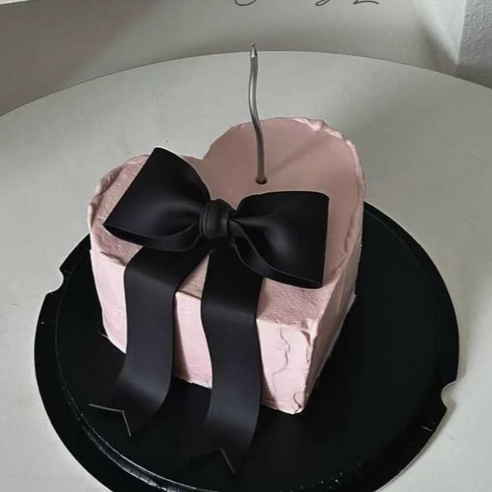 Kişiye özel krema ve taze kekle hazırlanır. Dışındaki kurdale şeker hamurundandır • 4-6 kişilik butik tasarım pasta • Vanilyalı veya çikolatalı kek katları • Krema ve ganaj dolgu • Kalp form tasarım • Büyük saten görünümlü siyah fiyonk dekor • Minimal dış kaplama (pastel pembe ton) • İsteğe bağlı isim veya kısa yazı ekleme