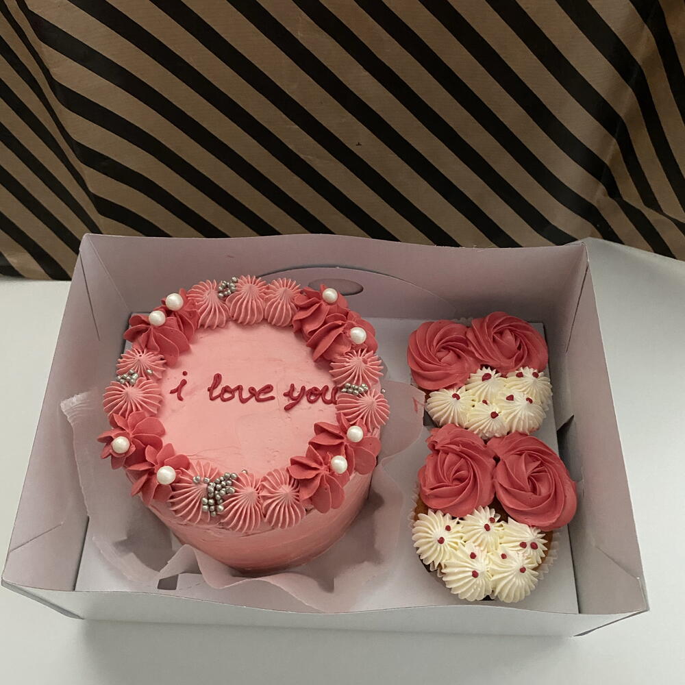 Set 1 adet 12 cm bento pasta ve 2 adet cupcake içerir. İstenilen renkte kremalarda ve yazıda değişiklik yapılabilir. Bunu notlar kısmında belirtin. Krema olarak swiss mereng buttercream kullanılır .
