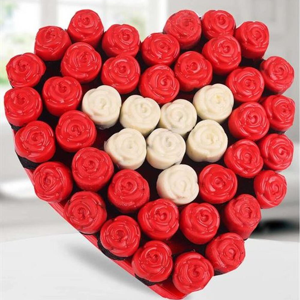 8 adet beyaz çikolata kaplı gül kek 35 adet kırmızı çikolata kaplı gül kek
