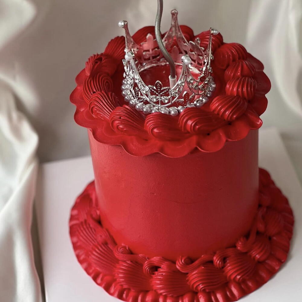 Kırmızı Taçlı Pastamız, 4-6 kişilik özel tasarım bir pastadır. 🎂 Üzerindeki rakam, isim veya kısa mesaj; talebinize uygun şekilde, minimal ve şık bir tasarım anlayışıyla düzenlenir. Mesaj yoluyla bunu iletmenizi rica ederiz. Aksi taktirde üzerinde herhangi bir şey yazmayacaktır. Doğum günü, sürpriz kutlamalar ve özel anlar için hem estetik hem de lezzetli bir tercih sunar. ✨