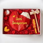 “Seni Seviyorum” yazılı kalp çikolata pinyata, sevdiğin kişiye hem tatlı hem de eğlenceli bir sürpriz yapmak isteyenler için özel olarak tasarlandı. Kırmızı kalp formundaki pinyata, altın tonlu detaylar ve beyaz çikolata dokunuşlarıyla romantik bir görünüm sunuyor. Kutudaki mini kalp çikolatalar, çikolata kaplı meyve dilimi ve kurdeleli ahşap çekiç ile hepsi bir arada özel bir hediye seti oluşturuyor. Pinyata kırıldığında içinden çıkan mini çikolatalar ve sürpriz atıştırmalıklar, hediyeyi daha da unutulmaz kılıyor. Sevgililer Günü, yıldönümü, doğum günü veya “Seni Seviyorum” demek istediğin her an için mükemmel bir seçenek.