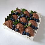 Taze yaban mersini ile eşleştirilmiş zarif çikolata kaplı çilekler 🍓🫐 Her bir çilek pürüzsüz süt çikolatasına batırılır ve ince bir gezdirme ile süslenir, tatlılık ve tazeliğin mükemmel dengesi için sulu yaban mersinleriyle tamamlanır. Herhangi bir özel gün için zarif ve şık bir hediye — minimal, lüks ve karşı konulamaz derecede lezzetli. ✨ Taze, birinci sınıf orman meyveleri ✨ Doğal içeriklerle hazırlanmıştır ✨ Zarif hediye sunumu ✨ Maksimum tazelik için günlük olarak hazırlanır