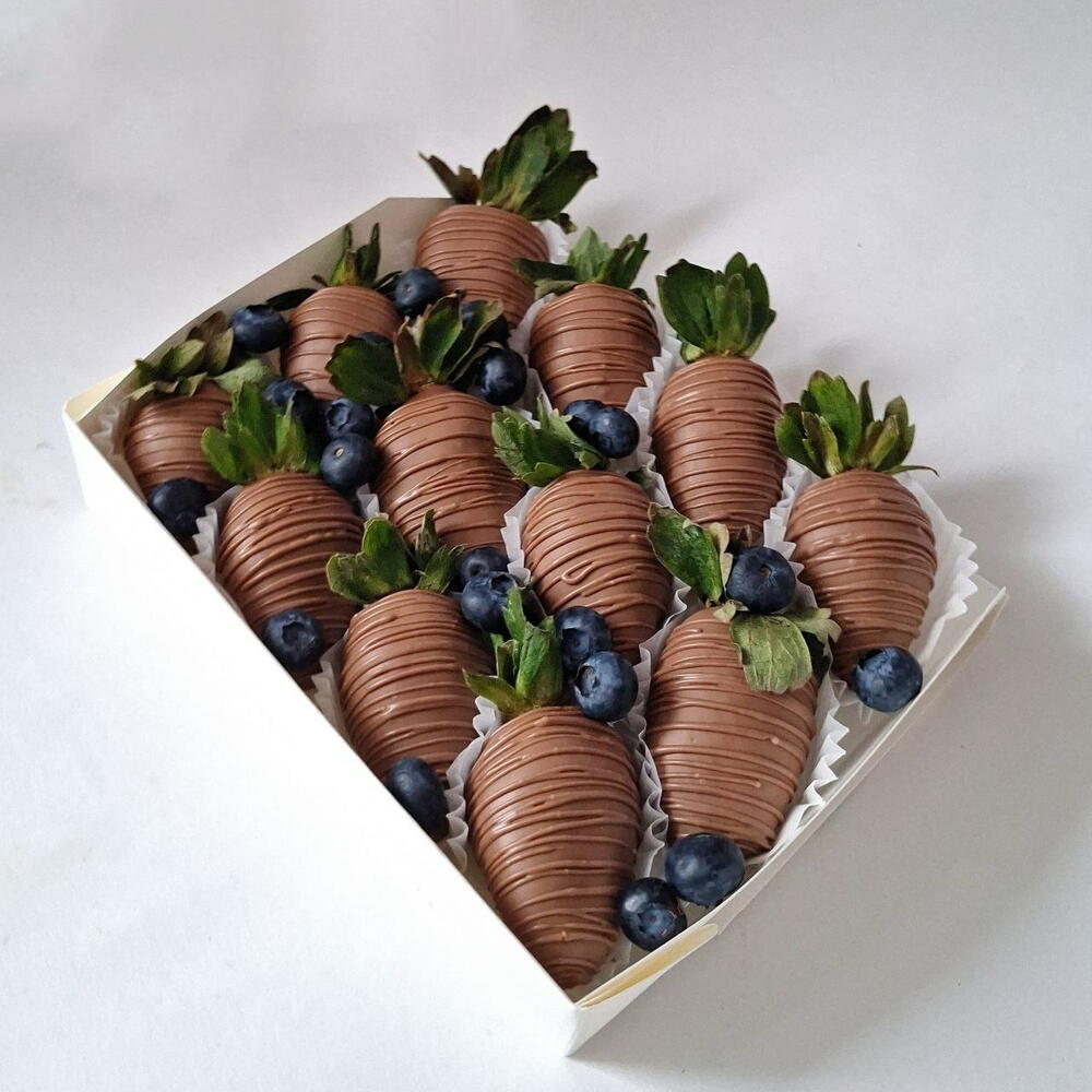 Klasik çikolata kaplı çilekler taze yaban mersinleriyle birlikte 🍓🫐 Her meyve, pürüzsüz süt çikolatasına elde batırılır ve narin bir bitirişle tamamlanarak tatlılık ile tazelik arasında mükemmel bir denge yaratır. Sade, zarif ve her zaman mükemmel bir hediye. ✨ Taze birinci sınıf meyveler ✨ Doğal içerikler ✨ Zarif sunum ✨ Her gün hazırlanır