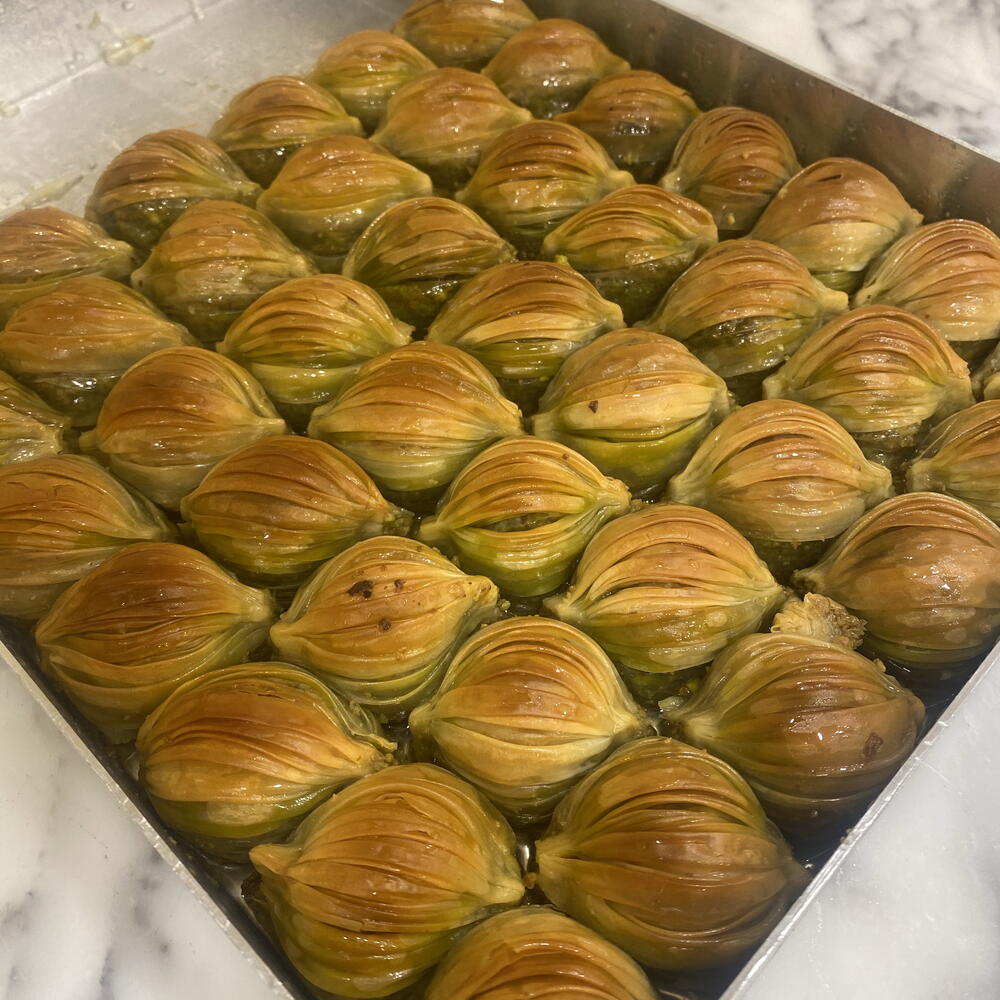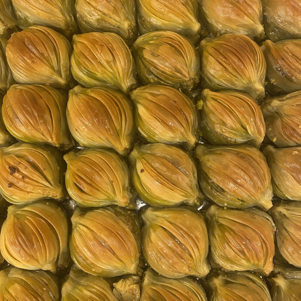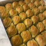 Bu özel baklavamızda, tereyağ, Antep fıstığı, şeker ve un bir araya getirildi. Sizin sağlığınız için ürünlerimizde glikoz kullanmıyoruz. Tereyağının zenginliği ve Antep fıstığının benzersiz tadı, tatlı severlerin gözdesi olacak. Şekerin tatlandırdığı bu lezzet, unun hafifliği ile dengelenmiştir. Bu ürün, çay saatlerinizin vazgeçilmezi olacak. Çıtır çıtır hamuru ile lezzeti damağınızda hissedeceksiniz