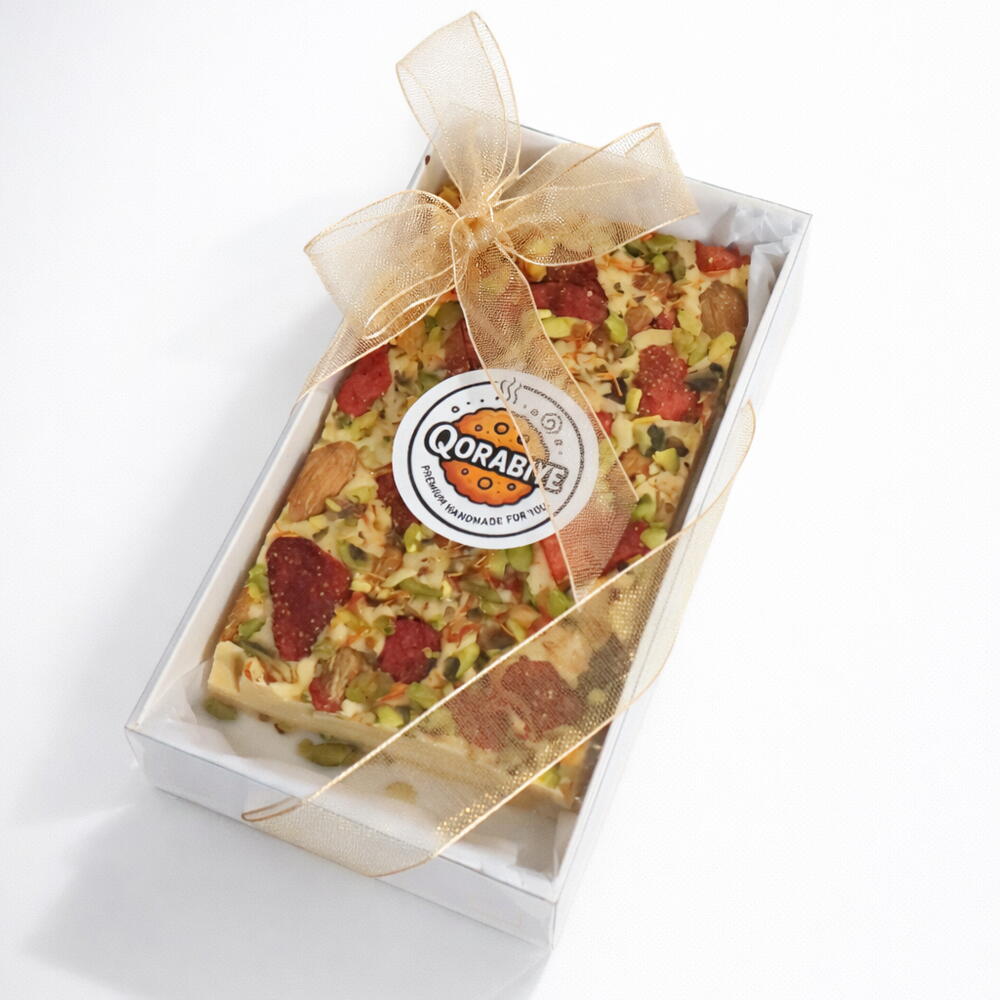 Özbekistan’ın geleneksel lezzetlerinden biri olan bu özel tatlıyı mutlaka denemelisiniz. Fıstık, badem, çilek kurusu ve safran yapraklarıyla süslenen; doğal tereyağı, şeker, katki maddesi ve koruyucu içermeyen süt tozu kullanılarak hazırlanan bu eşsiz lezzeti sizin ve sevdikleriniz için özenle hazırladık.