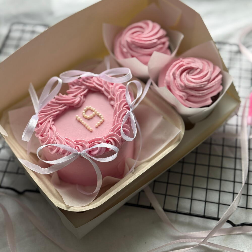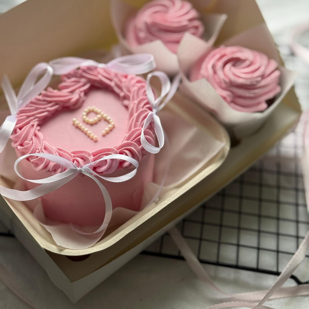 Mini bento keki ve kremalı gül kıvrımlarıyla iki güzel cupcake içeren zarif pembe tatlı seti. Doğum günleri, kutlamalar veya romantik sürprizler için mükemmel bir tatlı hediye. Zarif, şık ve lezzetli — bu tatlı kutusu her özel anı aydınlatacak.
