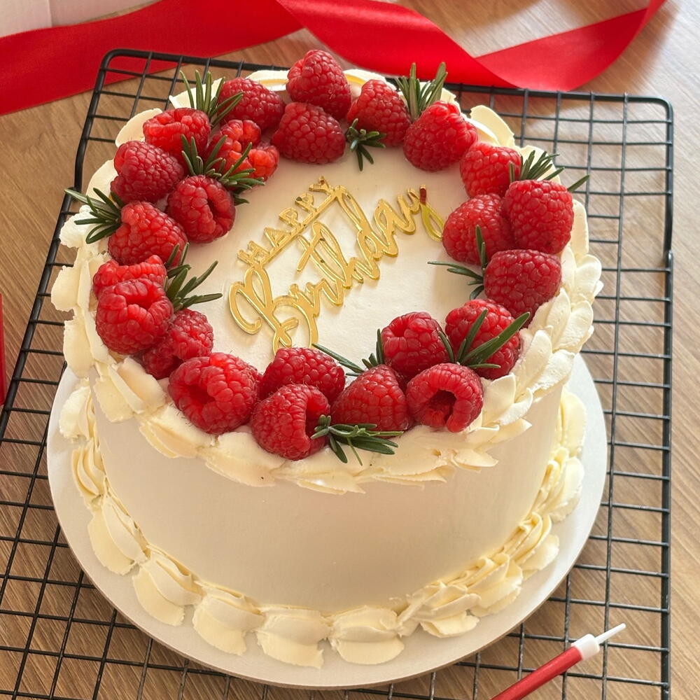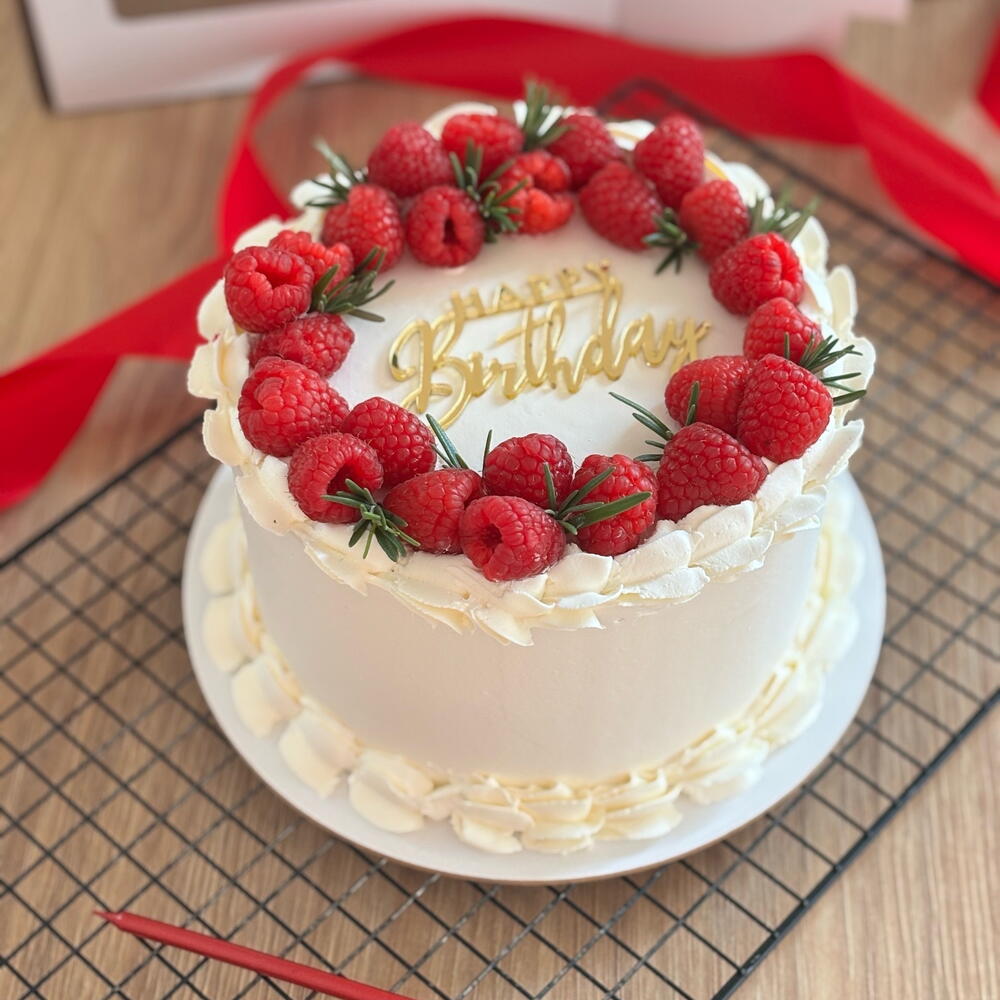 Taze ahududular ve zarif detaylarla süslenmiş narin bir doğum günü pastası ❤️ Pürüzsüz krema ile kaplı ve sulu meyvelerle dekore edilmiş olan bu pasta, hafif tatlılık ile taze lezzetin mükemmel dengesini sunar. Her kutlama için güzel ve lezzetli bir tercih — yumuşak, zarif ve etkilemek için hazırlanmış. ✨ Üzerinde taze ahududular ✨ Hafif ve kremsi doku ✨ Yüksek kaliteli malzemeler ✨ Sipariş üzerine taze hazırlanır