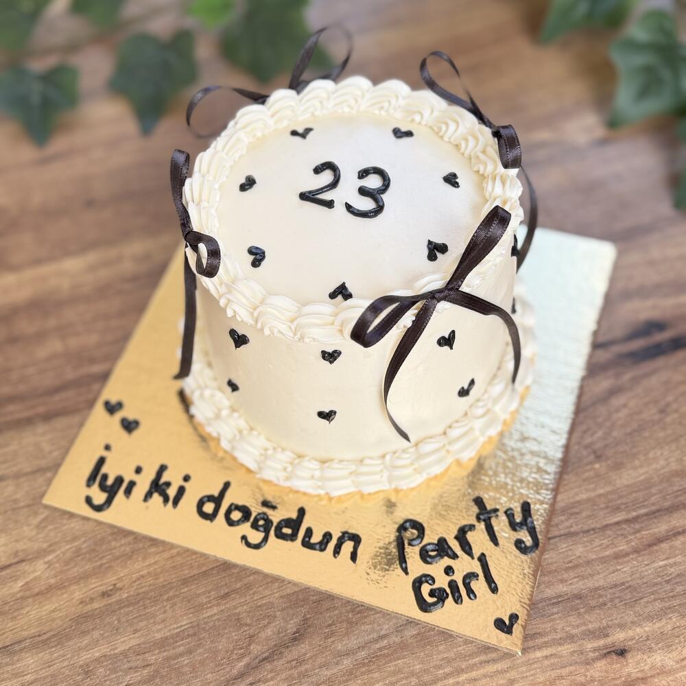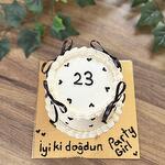 Beyaz çikolatalı ve labneli krema kaplıdır. Minik zarif kalpler ve kurdele rengi değiştirilebilir. Üzerine rakam veya kısa yazı yazılabilir. *un,şeker,yağ,yumurta,kabartma tozu,beyaz çikolata,labne,nişasta,süt,tuz