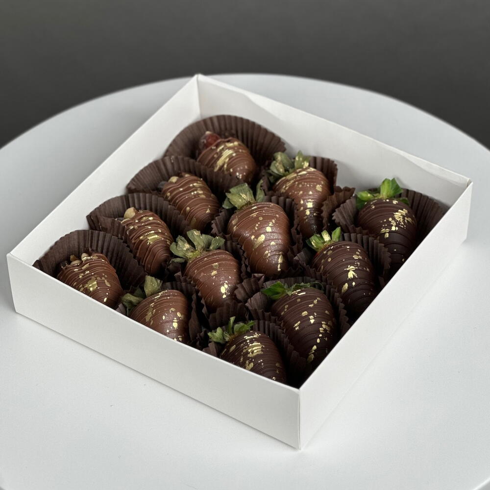 Belçika Bitter ve Sütlü Çikolatalı Çilek ve Hurma Taze, sulu çilekler ve seçilmiş birinci sınıf hurmalar, zengin bitter ve pürüzsüz Belçika sütlü çikolatasına elle batırılmıştır. Meyvemsi tazelik, doğal tatlılık ve derin çikolata notalarının mükemmel bir dengesi. Zarif bir şekilde sunulmuş olup, hediye olarak veya çiçek aranjmanına zarif bir ek olarak idealdir. Ağırlık: yaklaşık 450 g Miktar: 14 çilek + hurma