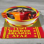 Bu özel tasarım Galatasaray temalı tatlı, futbolseverler için mükemmel bir seçim! Üzerindeki futbolcu fotoğrafı, İyi ki Doğdun Aslanım Ayaz yazısı ve takım renklerinden ilham alarak yapılan süslemeleriyle göz alıcı bir görünüme sahip. Sarı ve kırmızı renklerdeki şeker hamuru süslemeleri, Galatasaray tutkusunu lezzetli bir şekilde yansıtıyor. Şeker hamuru ve detaylı tasarımlar, bu tatlıyı kutlamalar için mükemmel kılıyor. Bu eğlenceli ve anlamlı tatlı, futbolsever dostlarınız için harika bir hediye olacak. Taze kalabilmesi için serin bir ortamda saklanması önerilir.