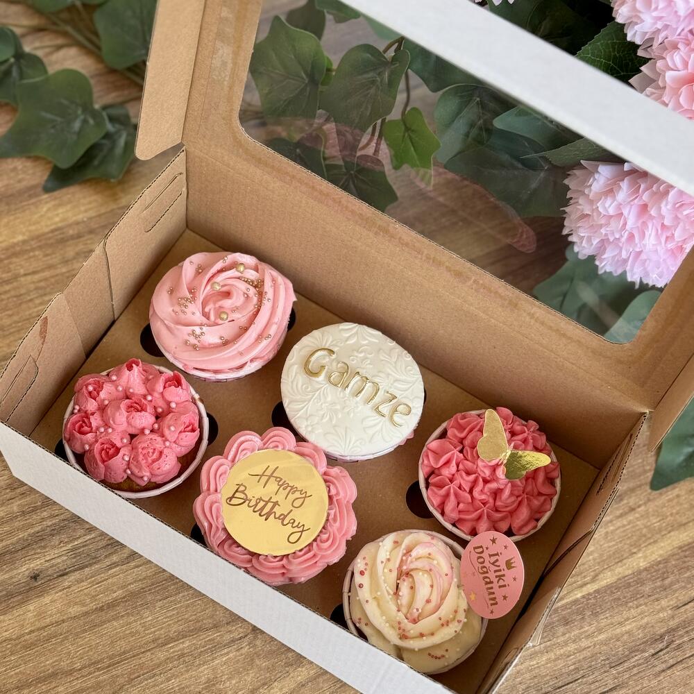 Bu özel günleriniz için mükellef bir lezzet sunuyoruz. Her biri özenle seçilmiş un, süt, yumurta, yağ, şeker, kabartma tozu, labne, krema ve beyaz çikolata ile hazırladığımız kapkekler sunum desteği sahip gold pleksi kağıtla bezenmiştir. Zarif bir detay olan yenilebilir şekerlemeler ve iyiki doğdun pankartını temsil eden kürdan, kapkeklerimize ayrı bir şıklık katıyor. Her siparişle birlikte ücretsiz mum da gönderiyoruz. Hem damak zevkinizi hem de göz zevkinizi hitap eden bu kapkeklerle sevdiklerinizin özel günlerini unutulmaz kılın.