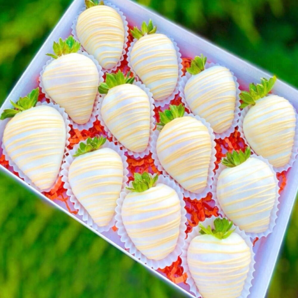 Taze çilek veya mevsimine göre muz, enfes beyaz çikolatayla buluşuyor. Şık kutusunda sevdiklerinize tatlı bir sürpriz yapmak için ideal! 🍫🍓🍌