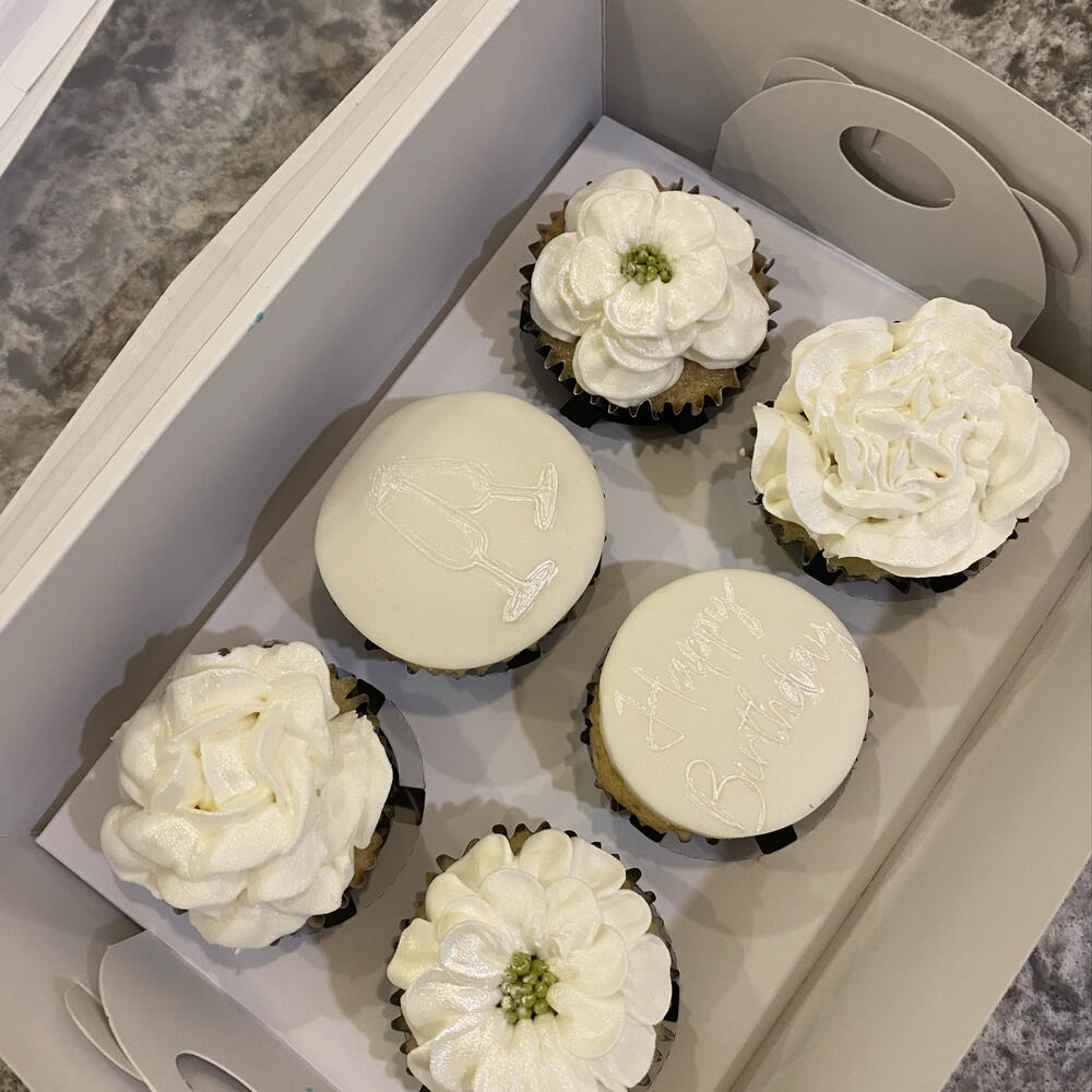 White Birthday Floral Cupcake - Beyaz Çiçek Doğum Gunu Temalı Kapkek (6)