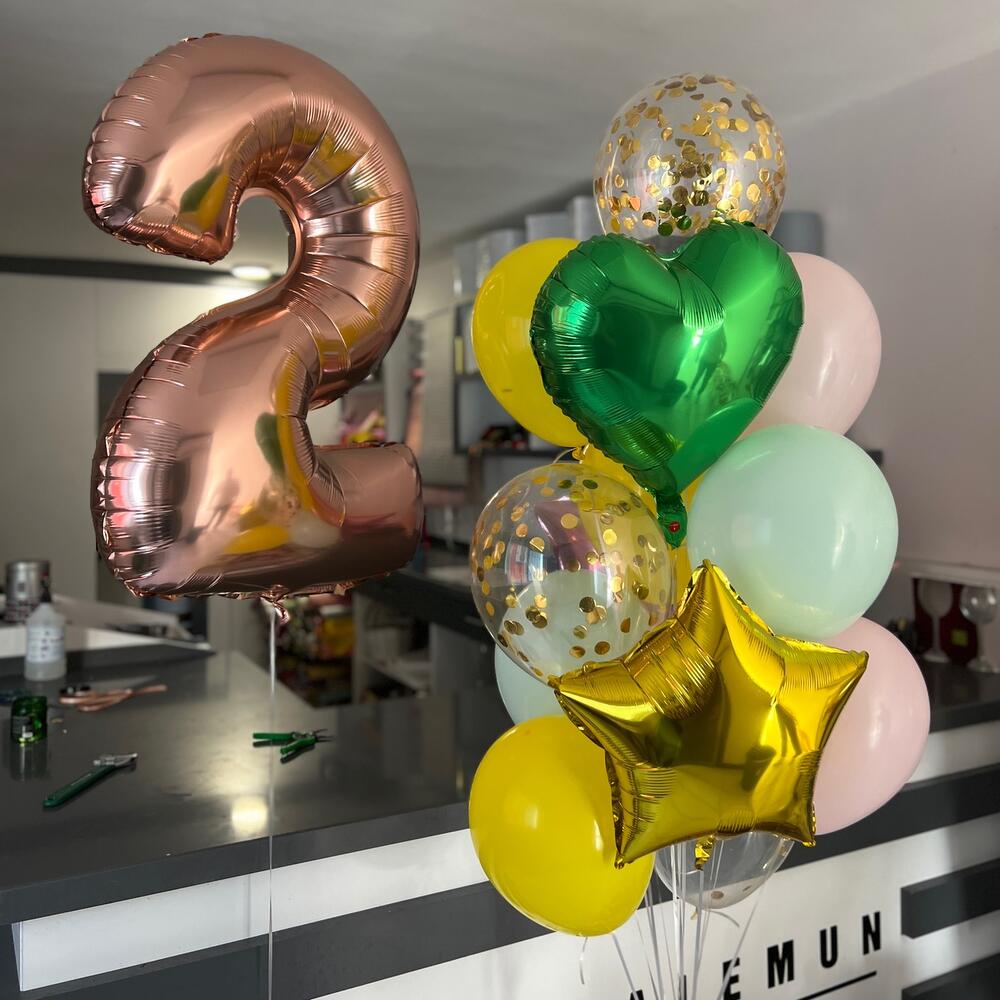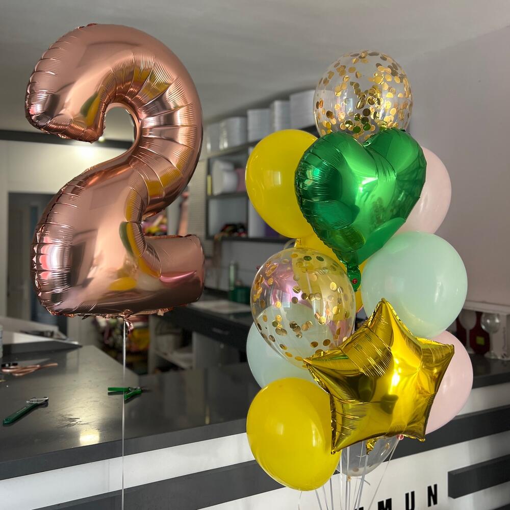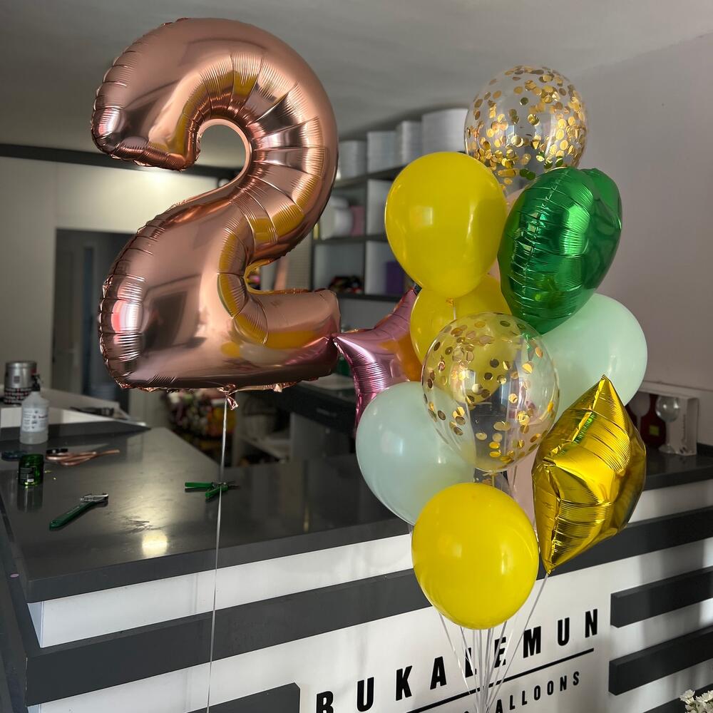1 rakam folyo balon 40 “ 7 latex 3 konfeti latex 2 yıldız folyo 1 kalp folyo