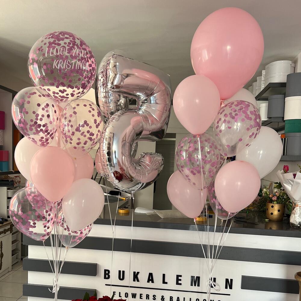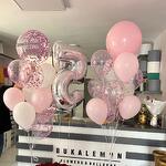 5 pembe latex 5 beyaz latex 10 konfetti transparan latex 2 bubble balon with tex 2 rakam folyo