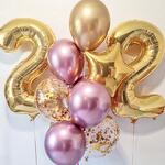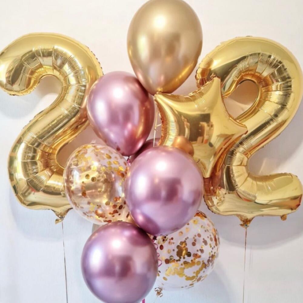 Sekiz tane altın pembe krom balon ve pullu bir tane folyo yıldız altın balon ve iki tane büyük rakam Renk değiştirebilirsiniz Ayrıca bizden yumuşak oyuncaklar ve tatlı, pasta de sipariş edebilirsiniz