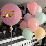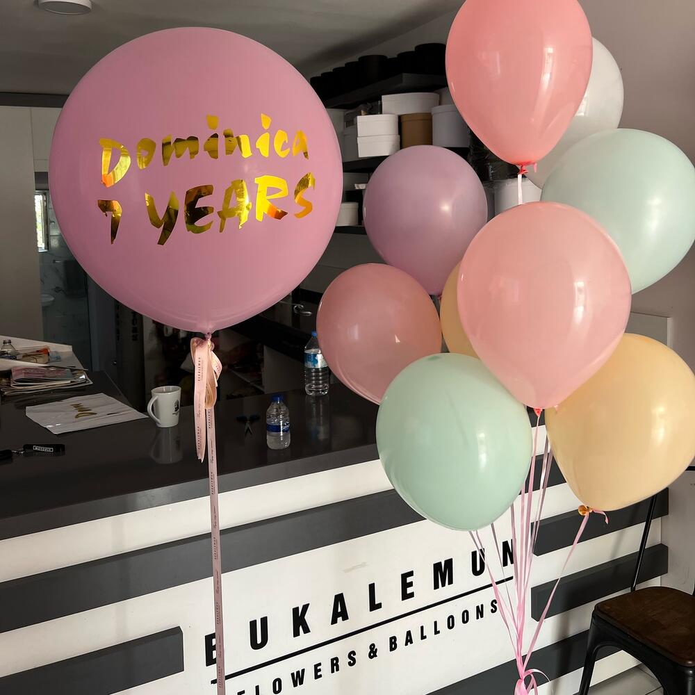 9 lu Makaron balon seti ve bir adet büyük yazılı bubble balon. Bubble balon üzerine istediğiniz yazı yazılabilir