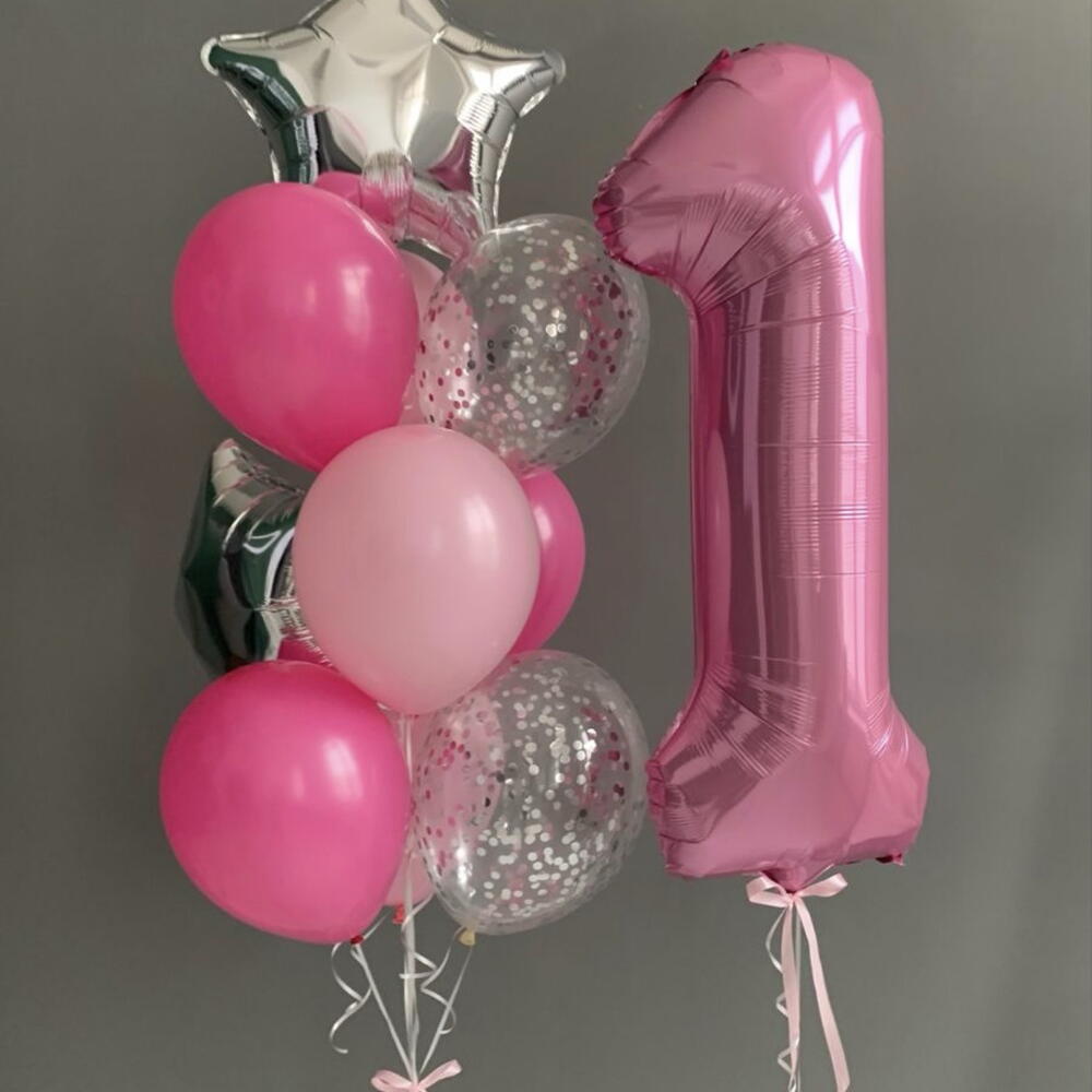 Luks Pembe Doğum Gunu Balon Seti – 1 Rakam Folyo Balon