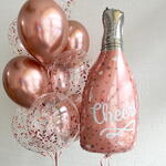 Set şunlardan oluşmaktadır: - Folyo figür Şampanya 87 cm - 5 adet konfetili şeffaf balon 35 cm - 5 adet krom balon (gül altın) 35 cm
