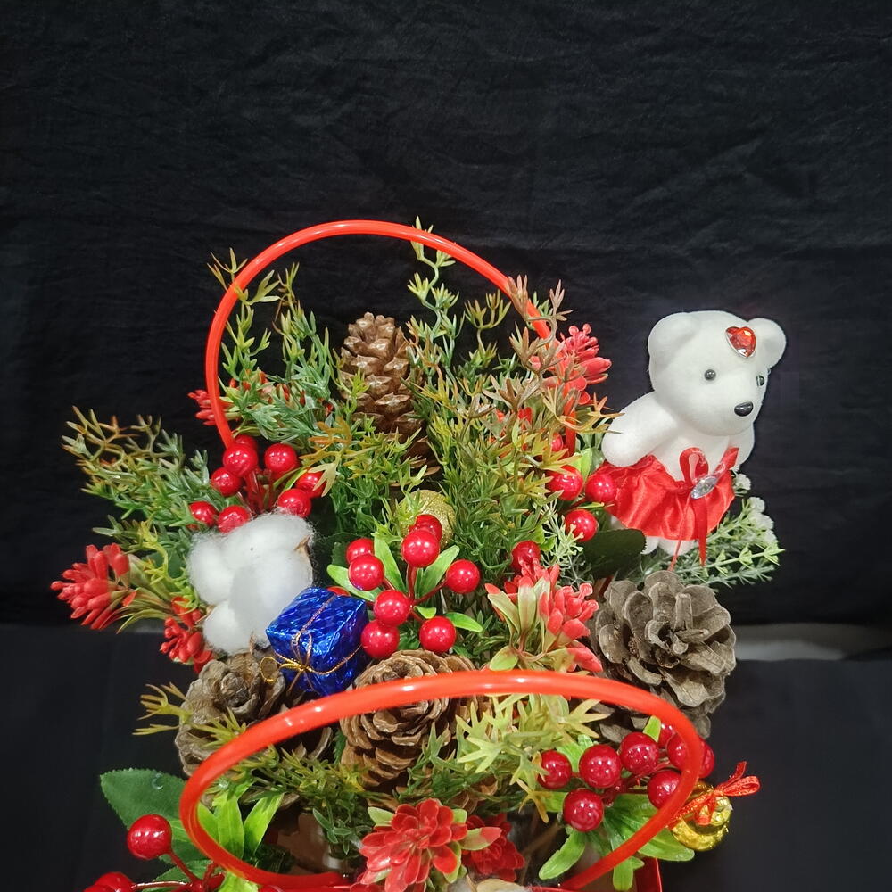 pamuk - 2 adet yeşillik - 25 adet kokina - 5 adet kozalak - 4 adet ayıcık - 1 adet yılbaşı süs topları - 2 adet çan - 1 adet