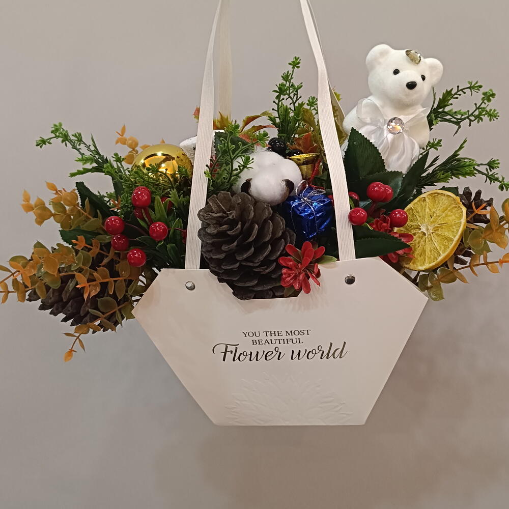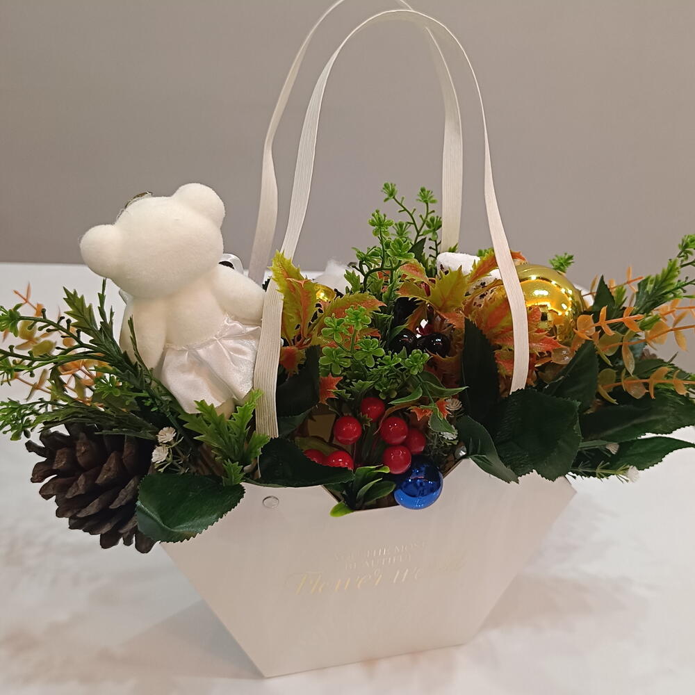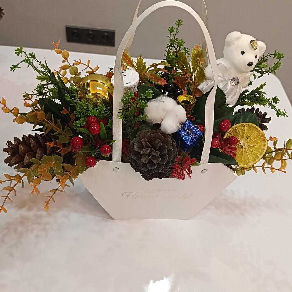 🎄 Yeni Yıl Özel Dekoratif Aranjman 🌟 Yeni yıl ruhunu evinize taşıyan bu özel masaüstü aranjman; çam kozalakları, kırmızı yeni yıl meyveleri, kuru portakal, ayıcık figürü ve dekoratif süslerle özenle hazırlanmıştır. El yapımıdır ve her biri özenle tasarlanır. Salon, ofis, mağaza dekoru olarak kullanabilirsiniz. Aynı zamanda sevdiklerinize harika bir yeni yıl hediyesi olur. ✨ Özellikler • Yeni yıl konseptli masaüstü aranjman • Çam kozalağı yapay bitki uyumu • Ayıcık figürü dekor • Yılbaşı ışığı, süs ve detaylarla zengin görünüm • Uzun süre kalıcı, bakımsız kullanım ✨ Kullanım Alanları ✔ Ev dekoru ✔ Yeni yıl hediyesi ✔ Ofis – resepsiyon ✔ Masaüstü süsleme ✨ Hediyeye hazır gönderim 🌟 Yeni yılın sıcak ruhunu evinizde hissedin!
