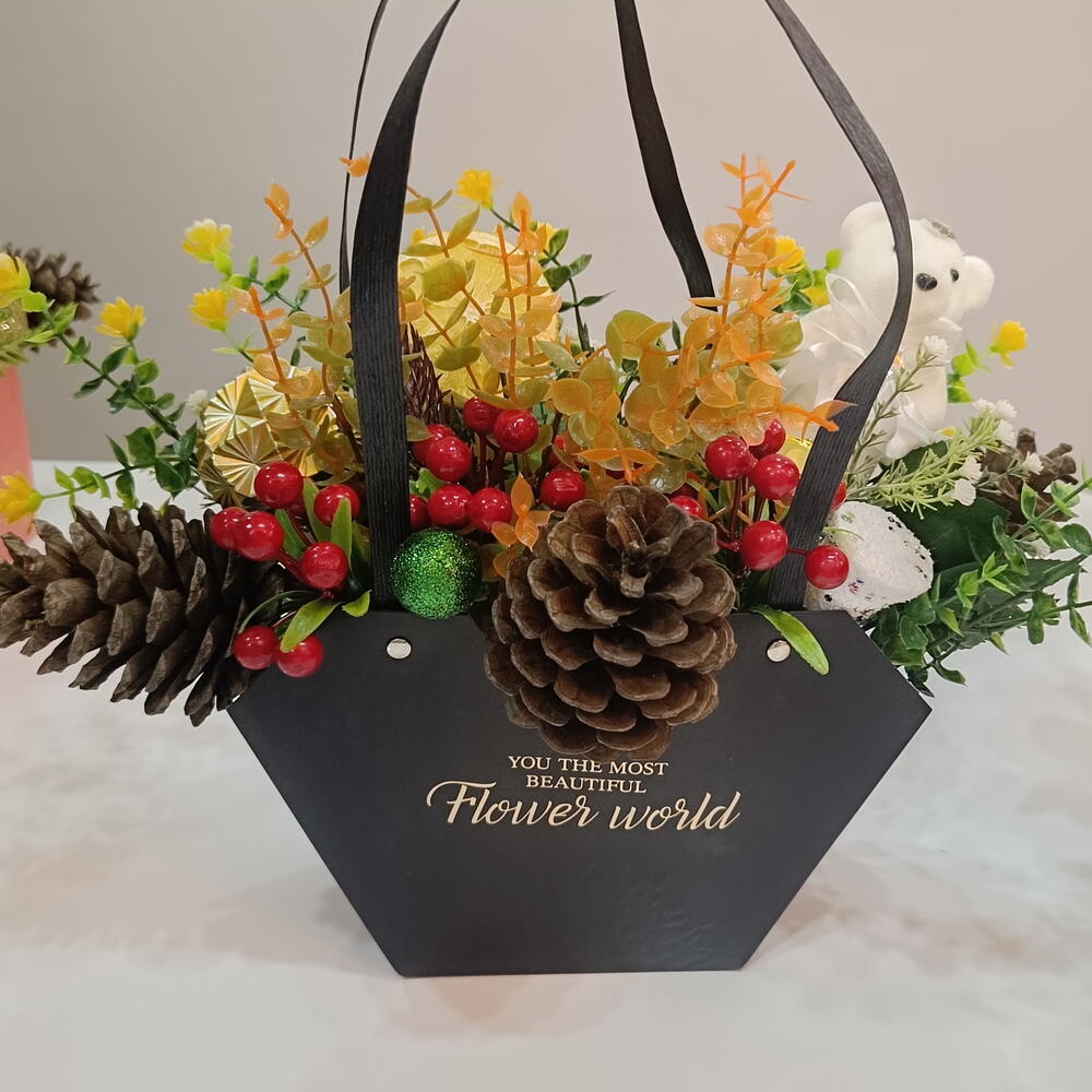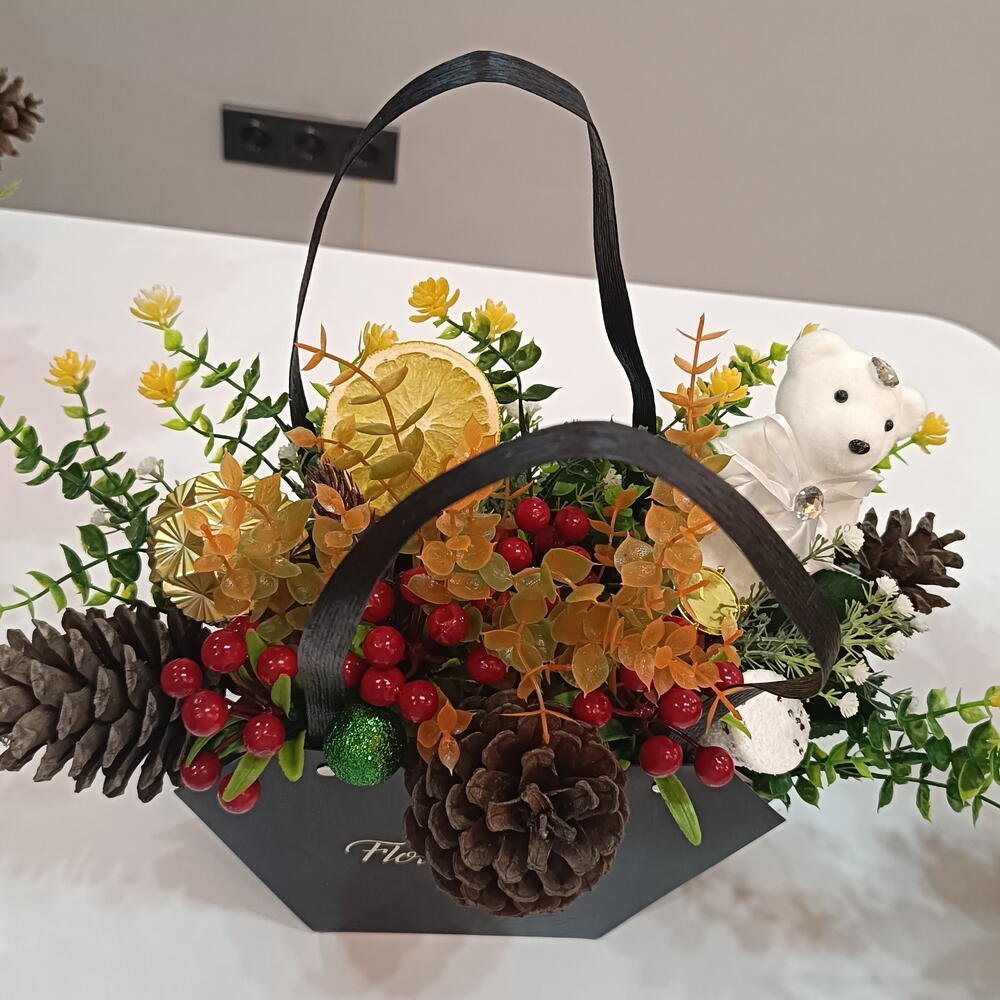 🎄 Yeni Yıl Özel Dekoratif Aranjman 🌟 Yeni yıl ruhunu evinize taşıyan bu özel masaüstü aranjman; çam kozalakları, kırmızı yeni yıl meyveleri, kuru portakal, ayıcık figürü ve dekoratif süslerle özenle hazırlanmıştır. El yapımıdır ve her biri özenle tasarlanır. Salon, ofis, mağaza dekoru olarak kullanabilirsiniz. Aynı zamanda sevdiklerinize harika bir yeni yıl hediyesi olur. ✨ Özellikler • Yeni yıl konseptli masaüstü aranjman • Çam kozalağı yapay bitki uyumu • Ayıcık figürü dekor • Yılbaşı ışığı, süs ve detaylarla zengin görünüm • Uzun süre kalıcı, bakımsız kullanım ✨ Kullanım Alanları ✔ Ev dekoru ✔ Yeni yıl hediyesi ✔ Ofis – resepsiyon ✔ Masaüstü süsleme ✨ Hediyeye hazır gönderim 🌟 Yeni yılın sıcak ruhunu evinizde hissedin!