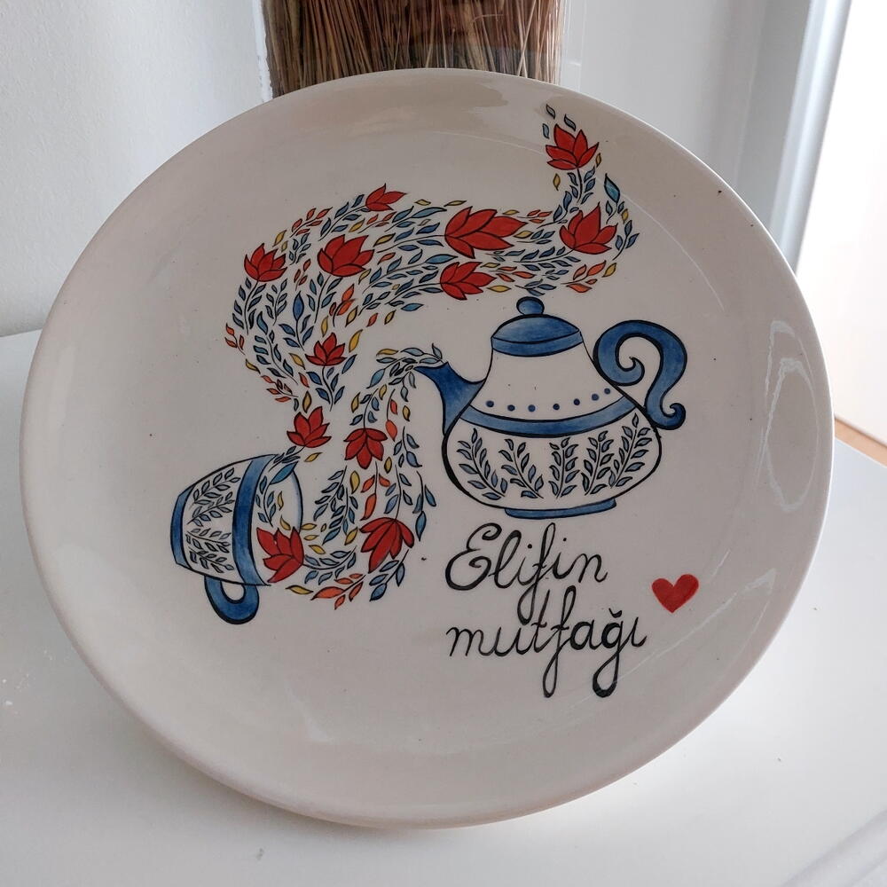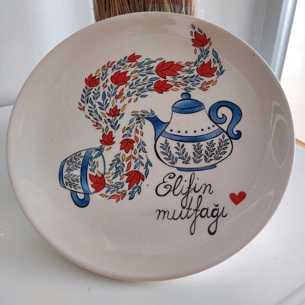 Kişiye özel duvara asila bilen dekoratif seramik tabak. İstediğiniz isim ve metin yazıla bilir.