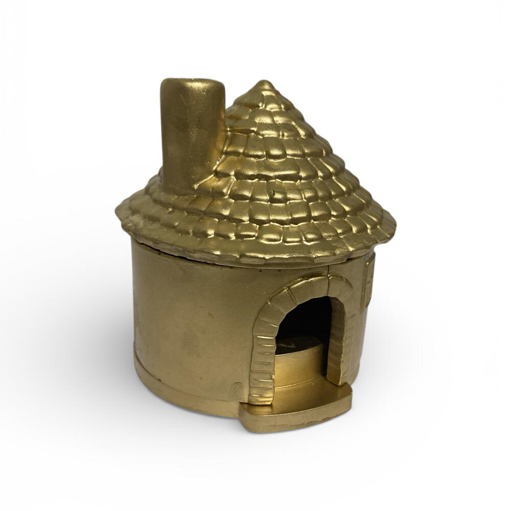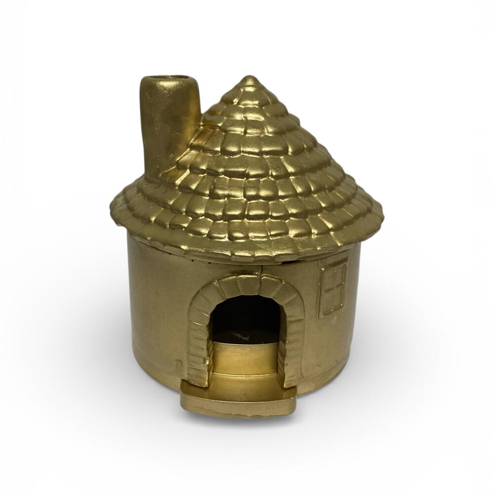 Taş tozunun doğal dokusunu altın sarısının zarafetiyle buluşturduk. Bu el yapımı minik ev, sadece bir dekorasyon objesi değil; akşamlarınıza eşlik edecek bir huzur kaynağı. • Mumluk Olarak: Kapısından içeri yerleştireceğiniz bir tealight mum ile süzülen ışığın sıcaklığını hissedin. • Tütsülük Olarak: Geri akışlı (backflow) veya konik tütsü kullanımına uygun yapısıyla, dumanın bacadan nazikçe tütüşünü izlemek tam bir terapi seansı!