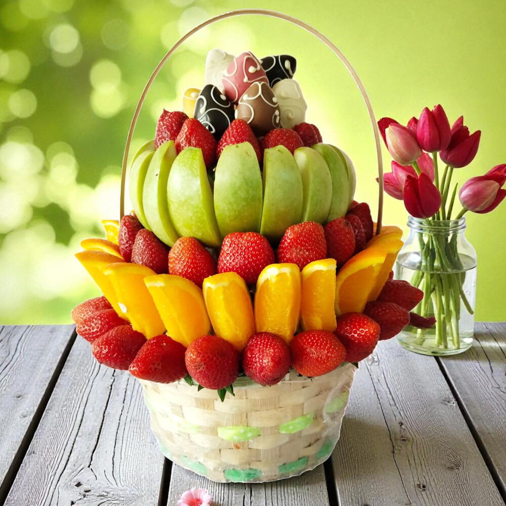 Aşk Bahçesi Meyve Sepeti, sevdiğiniz kişiye tatlı ve zarif bir sürpriz yapmak isteyenler için özenle hazırlanmış romantik bir meyve aranjmanıdır. Taptaze çilekler, sulu portakal dilimleri, canlı yeşil elmalar ve kalp desenli özel çikolataların bir araya gelmesiyle oluşan bu estetik tasarım, hem göze hitap eder hem de mutluluğu tatlandırır. Sevgililer Günü, yıldönümü, doğum günü, özel kutlamalar ve “Seni Seviyorum” demek istediğiniz her an için mükemmel bir seçimdir. Şık sepet formu, canlı renkleri ve doğal içerikleriyle, hem romantik hem de unutulmaz bir hediye alternatifi sunar. Aynı gün teslimat seçeneği sayesinde sürprizleriniz dakikalar içinde yerine ulaşır. Ürün İçeriği * 45 Adet Çilek * 20 Adet Portakal Dilimi * 15 Adet Elma Dilimi * 10 Adet Çikolata Kaplı Çilek